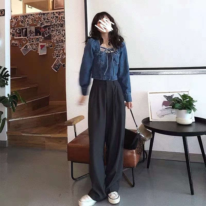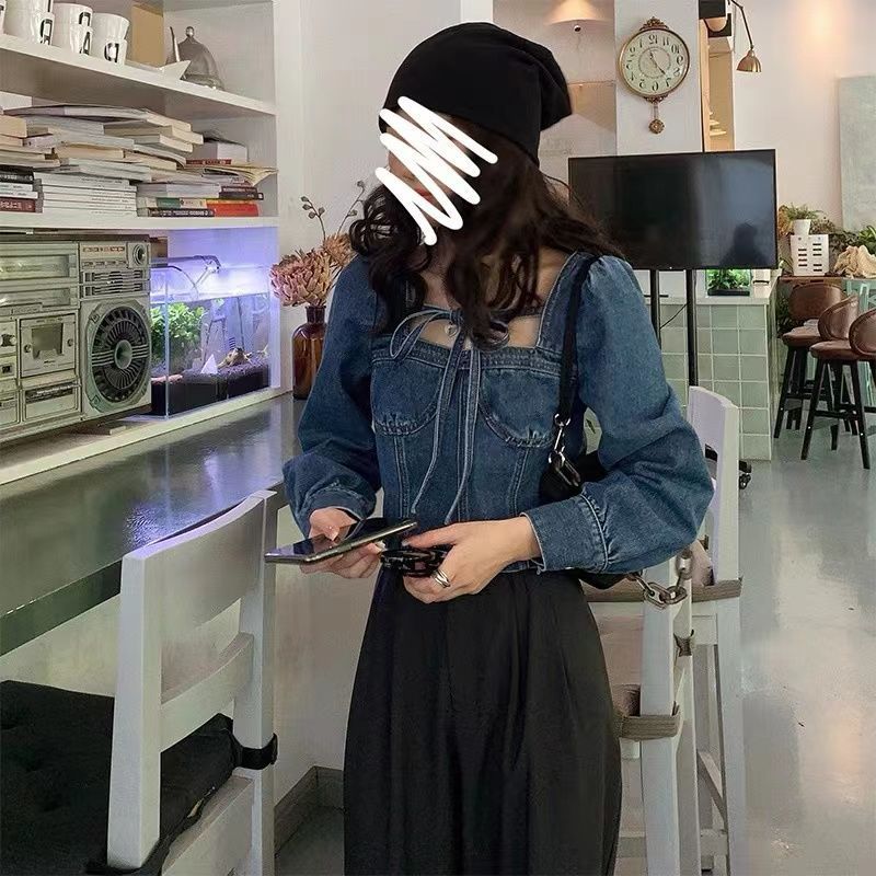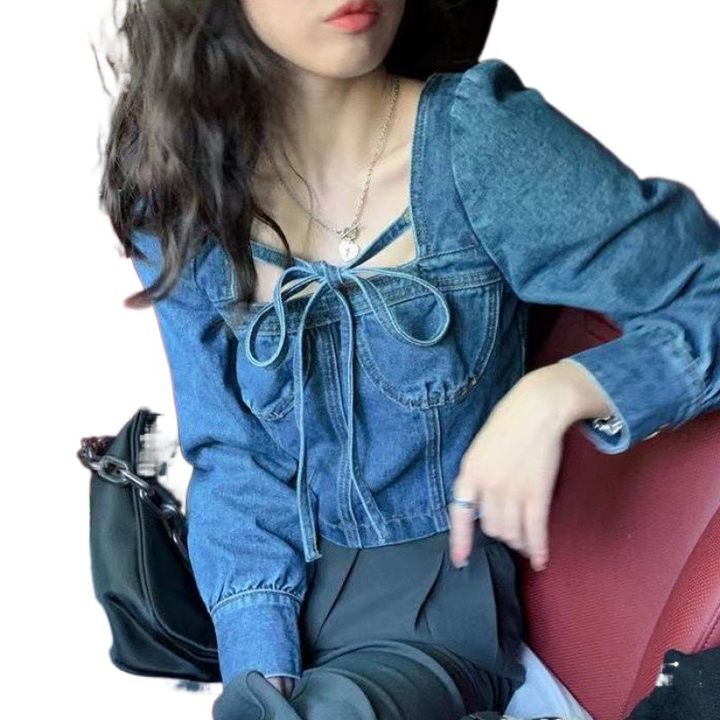 | nameOriginal | Spring and Autumn 2024 New Retro French Shirt Square Collar Bubble Sleeve Short Denim Top Women's Design Sense Niche |