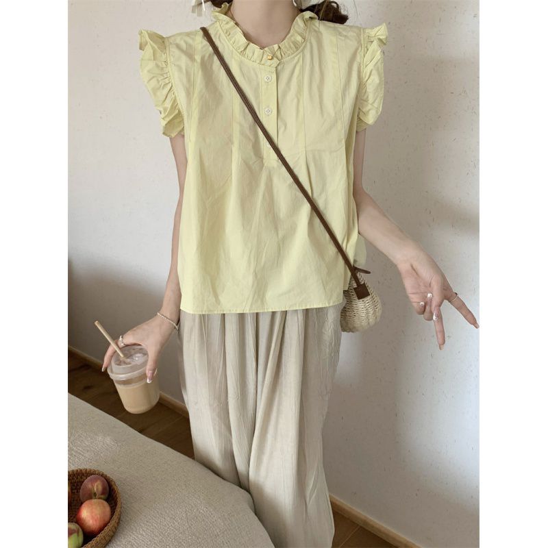 | nameOriginal | Spring and Autumn 2024 New Small Flying Sleeve Ear Trim Shirt Two-Piece Set Women's Foot Pants Salt High-Level suit |