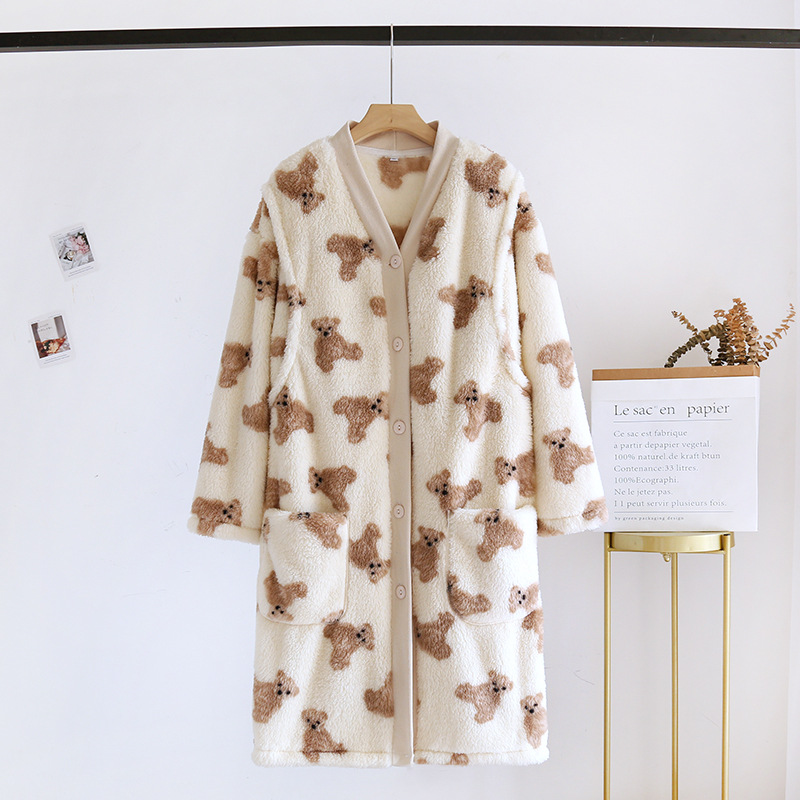 | nameOriginal | Spring and Autumn and Winter Flannel Nightgown Thickened Warm Cartoon Cute Soft and Comfortable Mid-length Home Pajamas |
