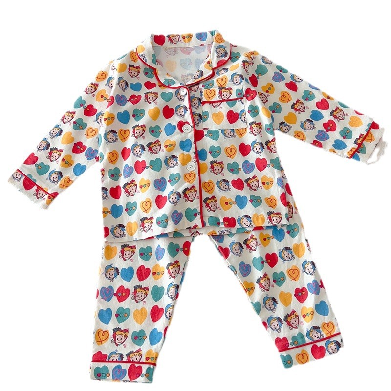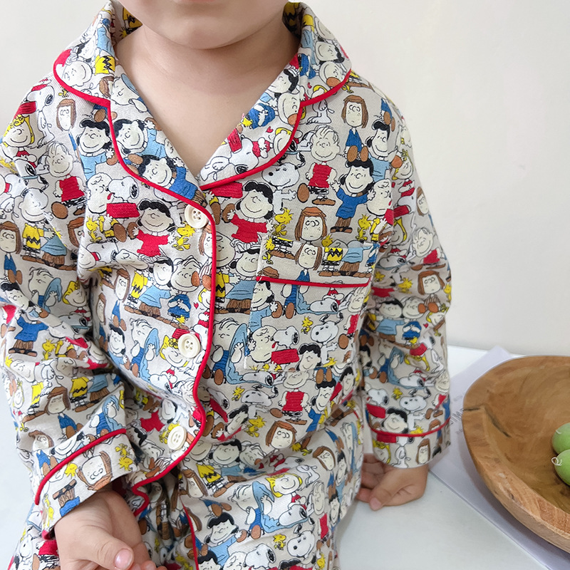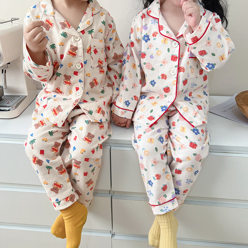 Spring and autumn baby pure cotton brushed home wear suit boys and girls cartoon parent-child pajamas children parent-child wear mother-child wear