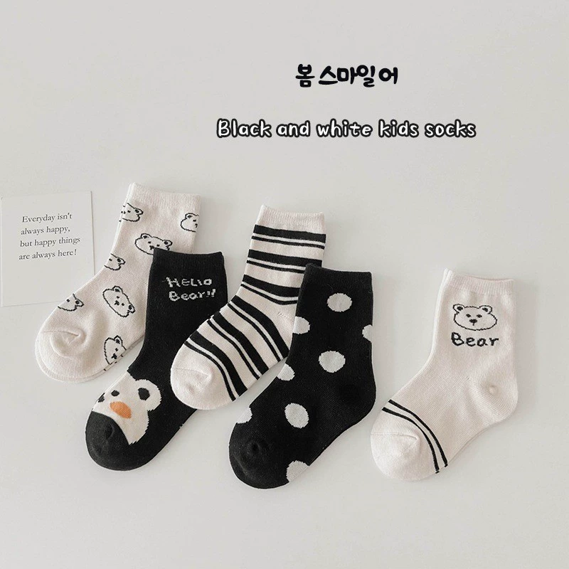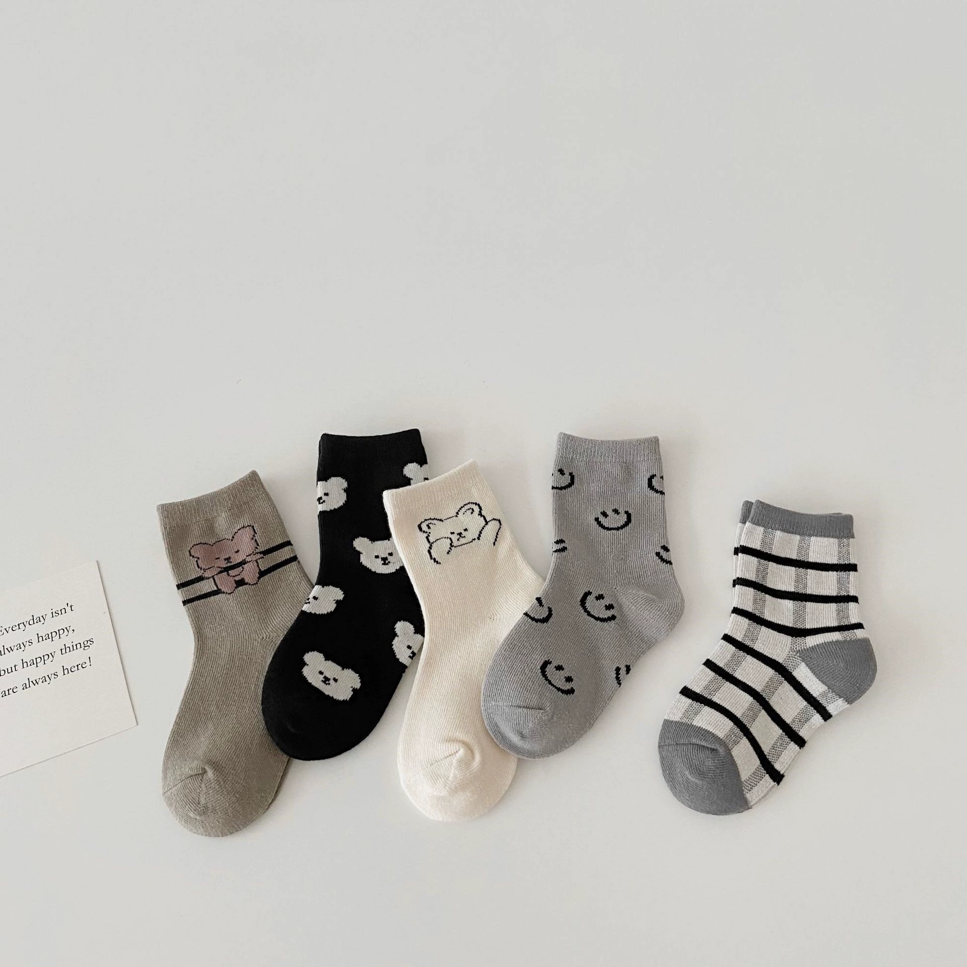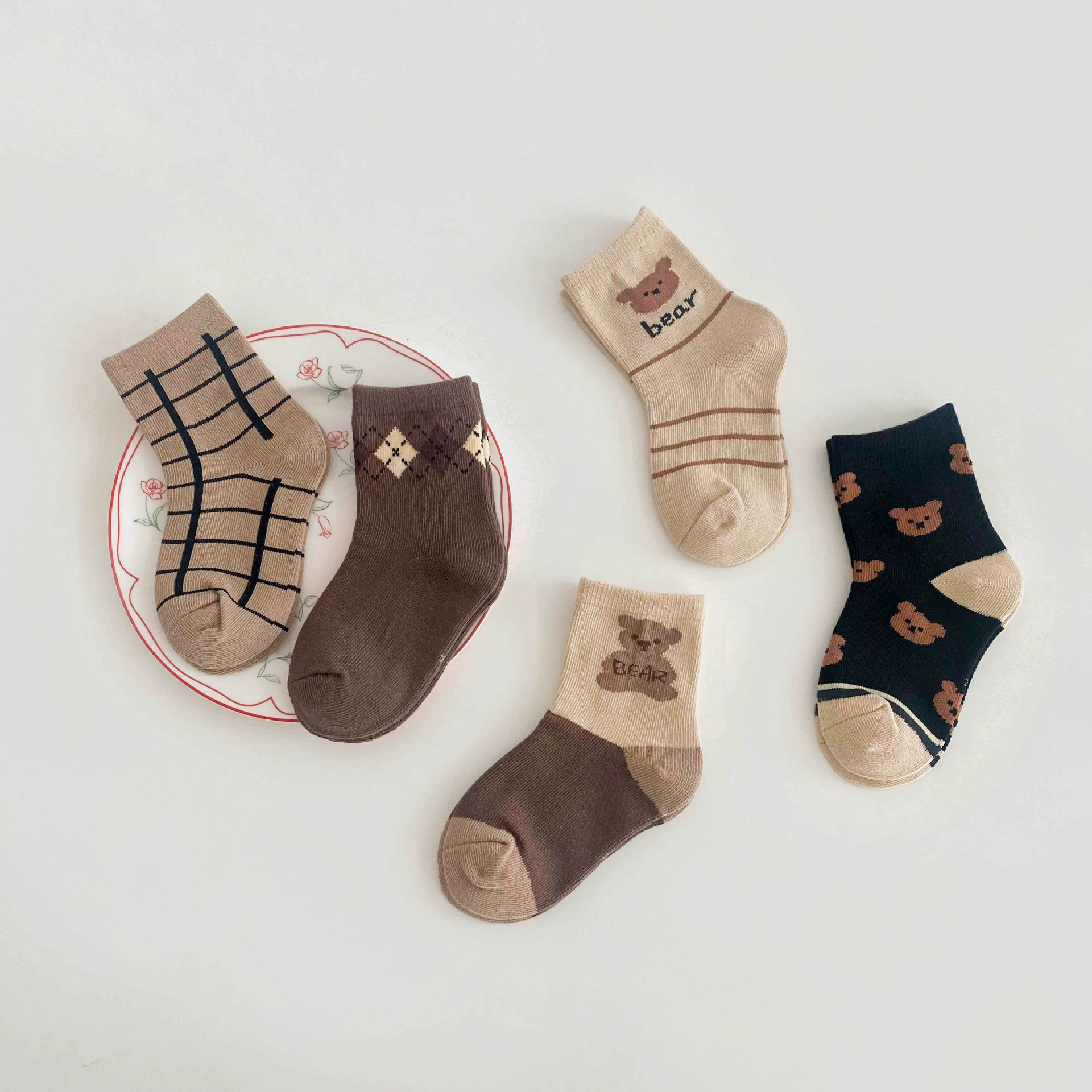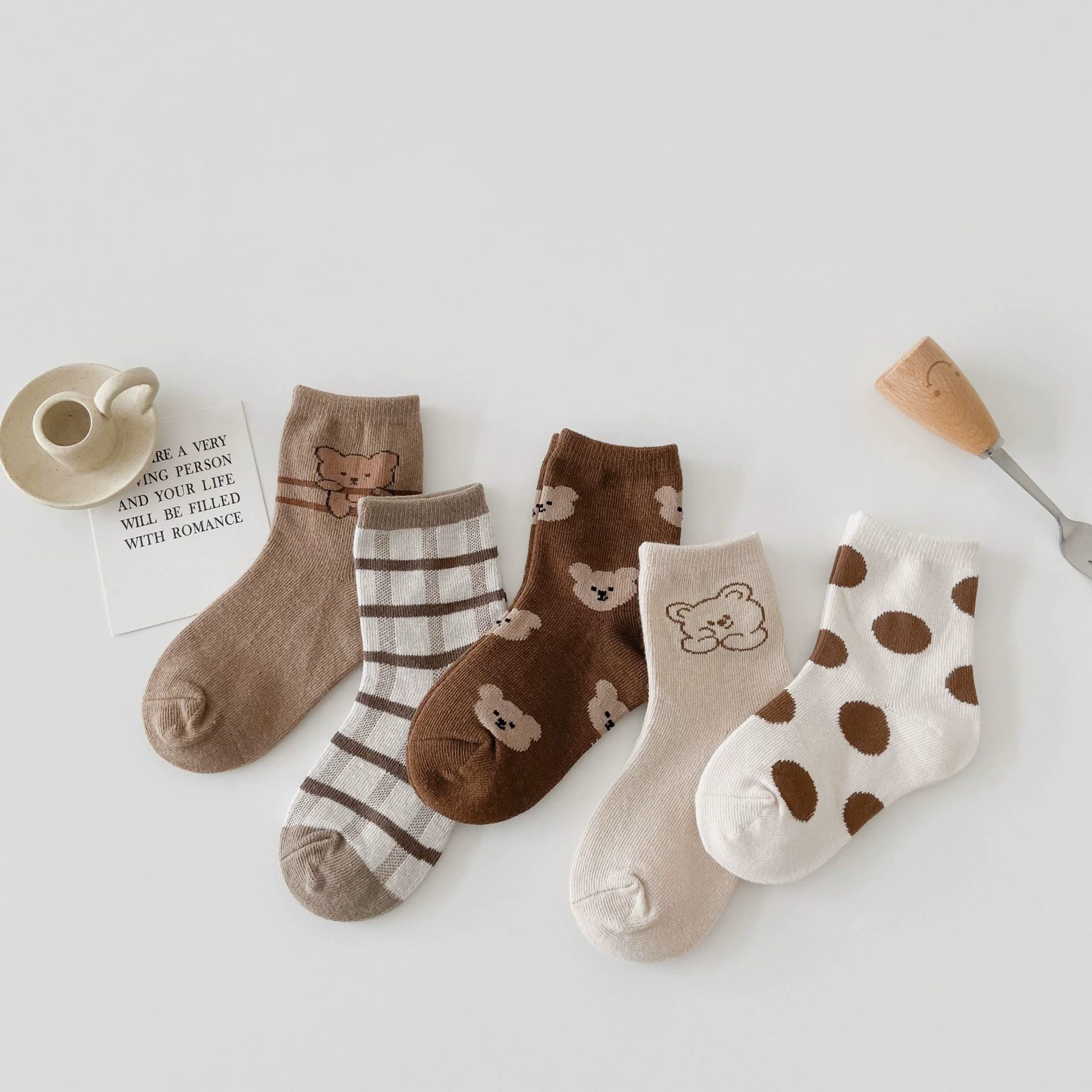 Spring and Autumn Bear Checkered Polka Dot Color Block Children’s Socks