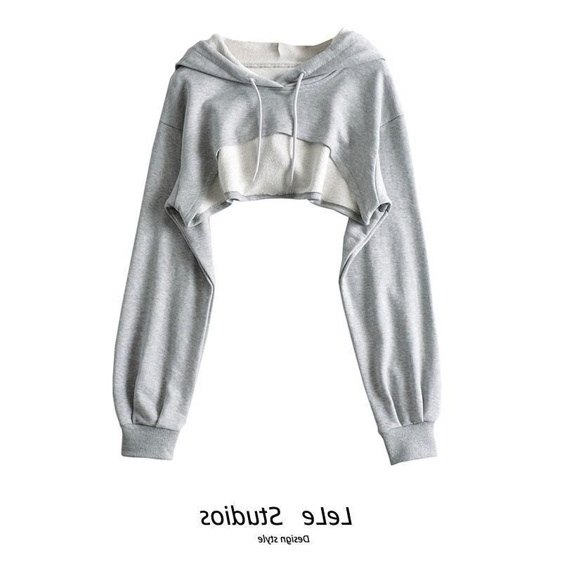 Spring and Autumn Black Short Sweater Women's New All-match Navel Pullover Blouse Long-sleeved Loose Top Trendy