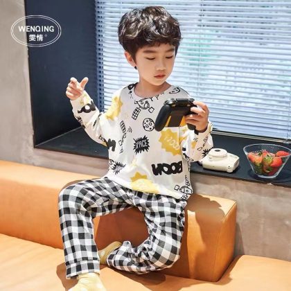 | nameOriginal | Spring and Autumn boys' pajamas thin long-sleeved children's cute little boy cartoon medium and big Children Baby Autumn homewear |