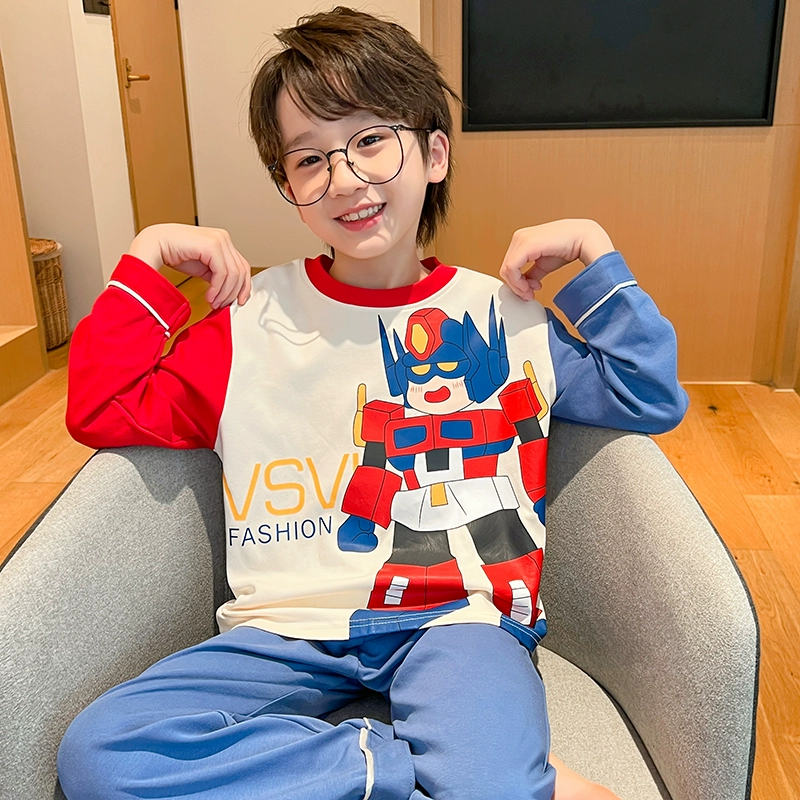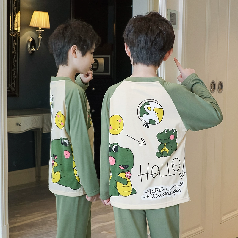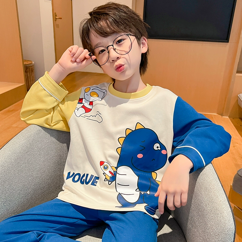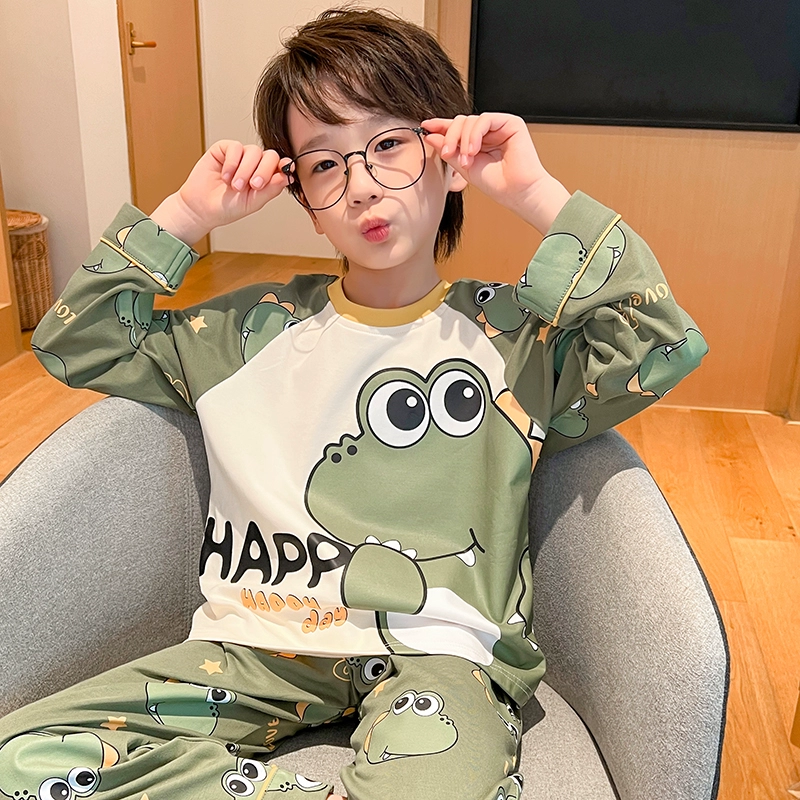 | nameOriginal | Spring and Autumn Children's Long Sleeve Boys' Pure Cotton Pajamas Thin Cartoon Dinosaur Men's and Women's Summer Air-conditioned Home Clothing Set |