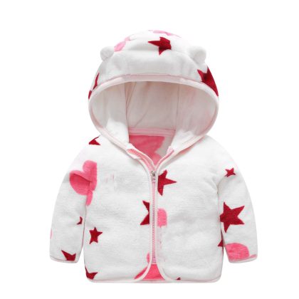 Spring and Autumn clothing children’s coral fleece coat thickened warm baby baby clothing boys and girls zipper hooded top