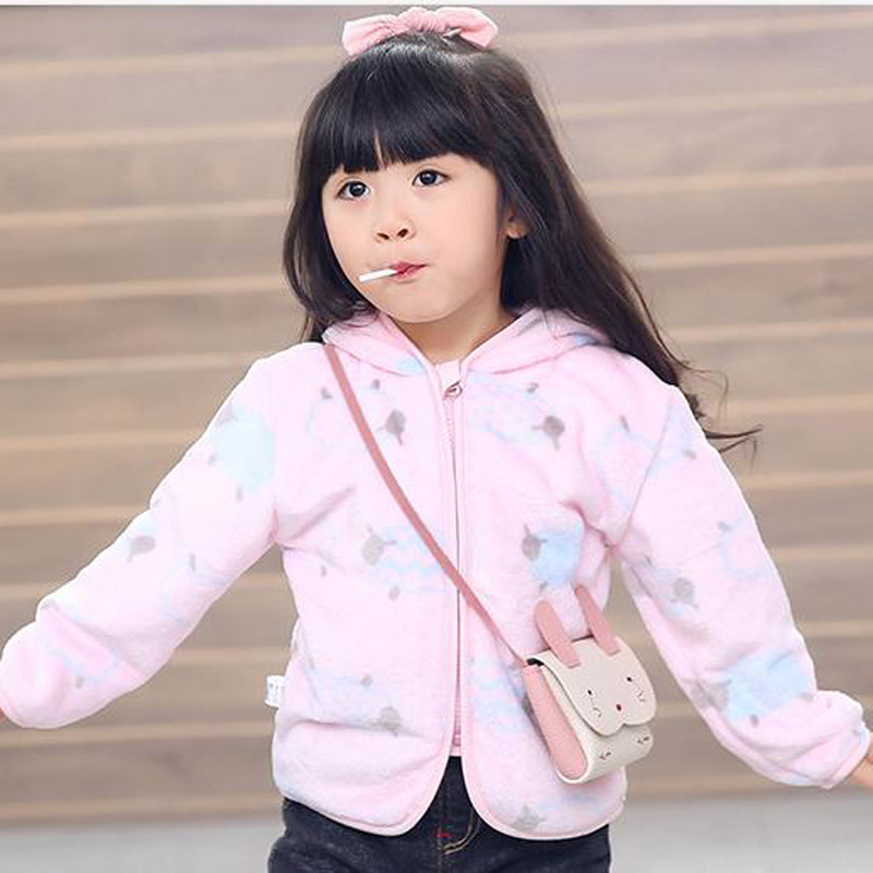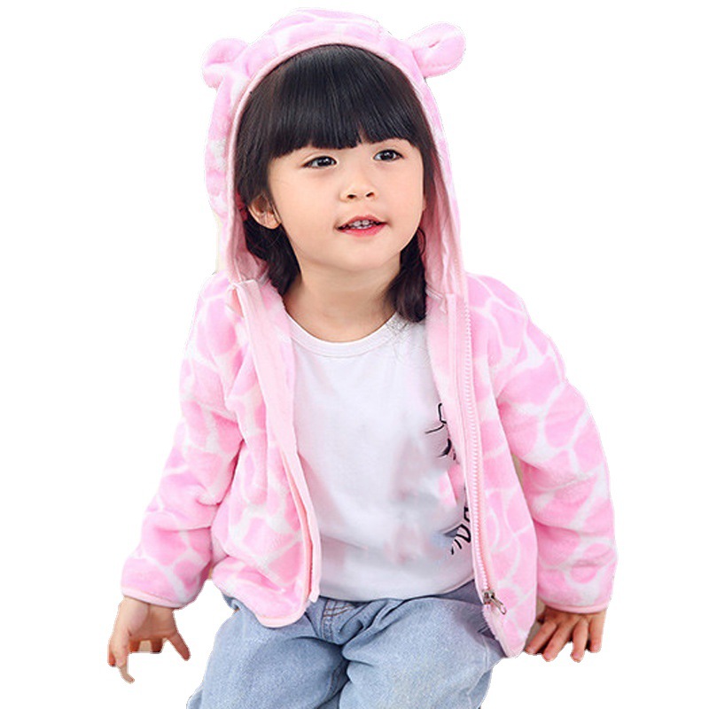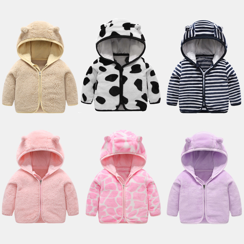 Spring and Autumn clothing children's coral fleece coat thickened warm baby baby clothing boys and girls zipper hooded top
