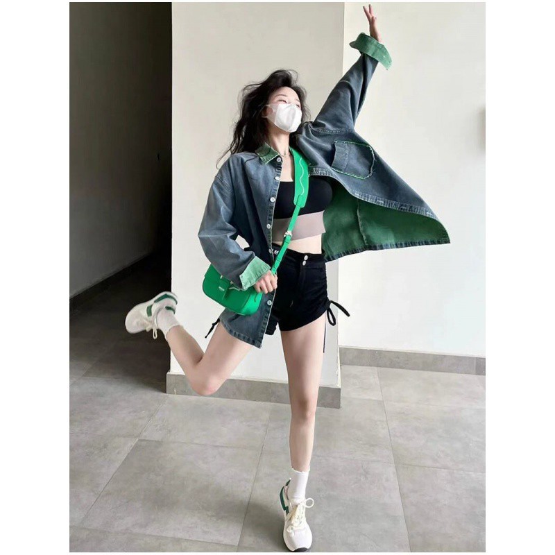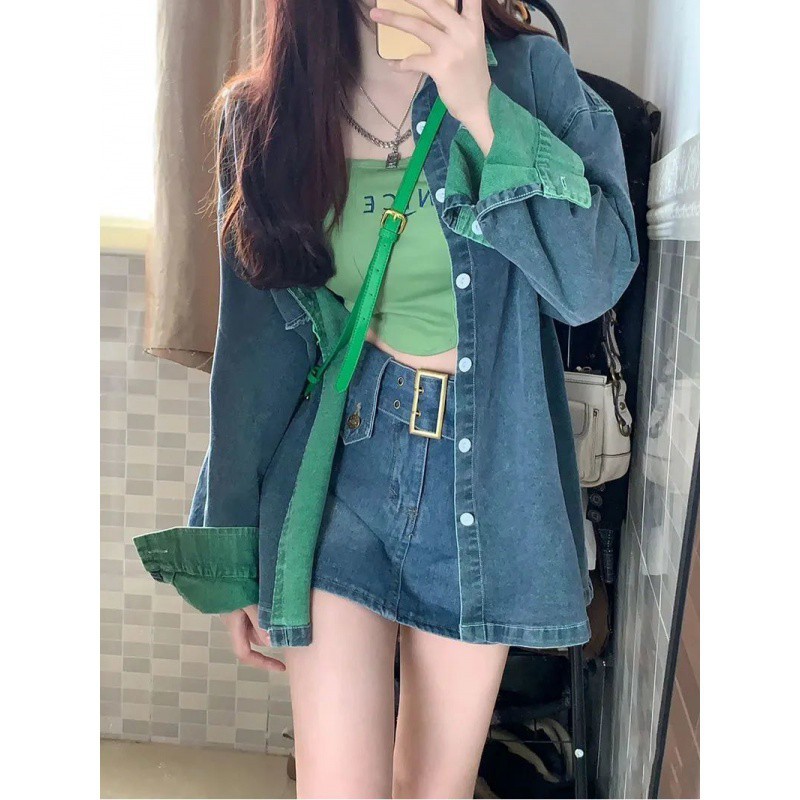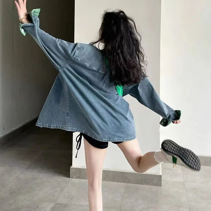 | nameOriginal | Spring and Autumn Contrast Stitching Shirt Denim Jacket Women's Retro Hong Kong Style New Loose Harajuku Style Jacket Top |