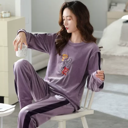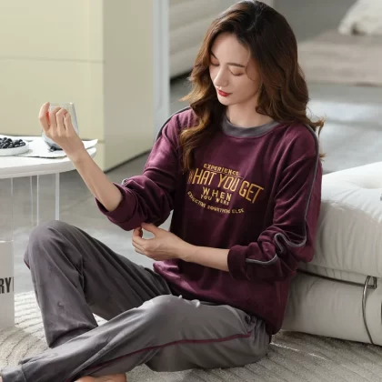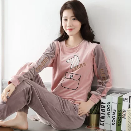 | nameOriginal | Spring and Autumn Coral Velvet Pajamas Women's Thin Autumn and Winter Thick Velvet Flannel Island Velvet Outerwear Home Clothing Set |