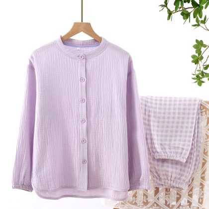 | nameOriginal | Spring and Autumn Cotton Japanese Style Plaid Women's Home Wear Long-Sleeved Crepe Double-Layer Gauze Simple Outwear Pajamas Set |