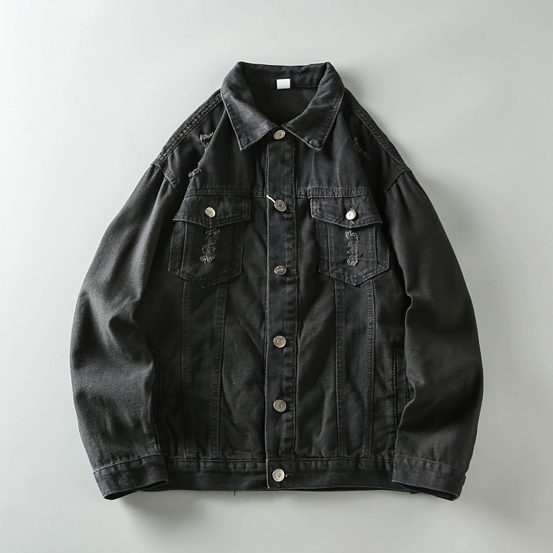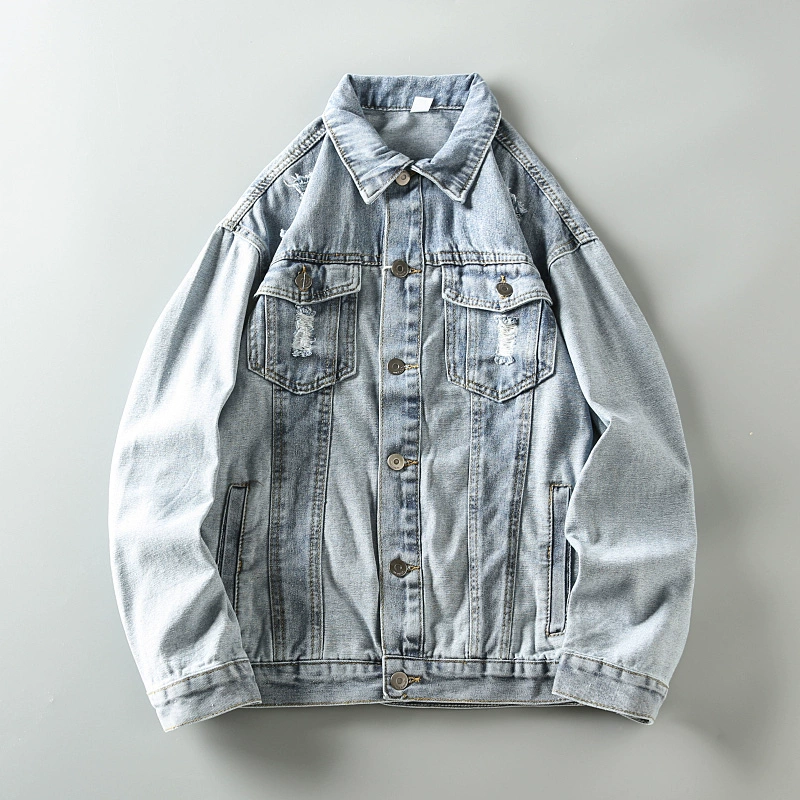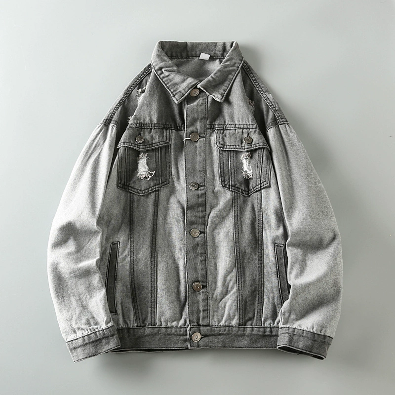 Spring and autumn distressed men's and women's distressed lapel denim jackets