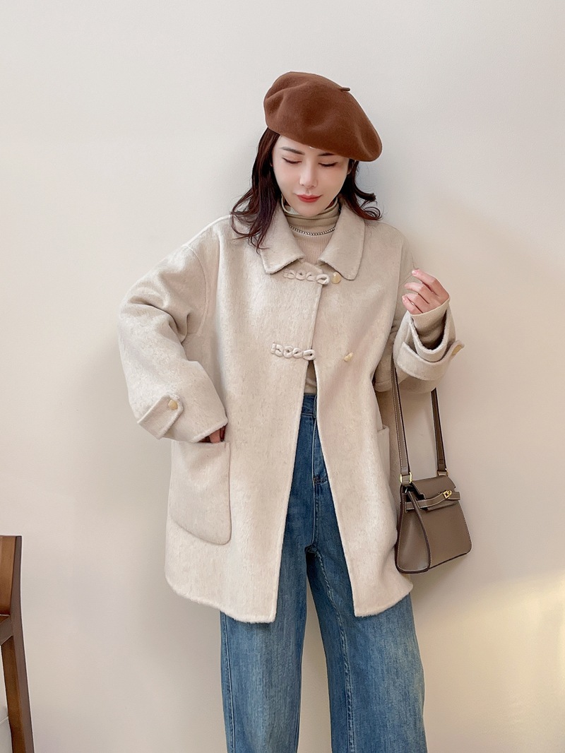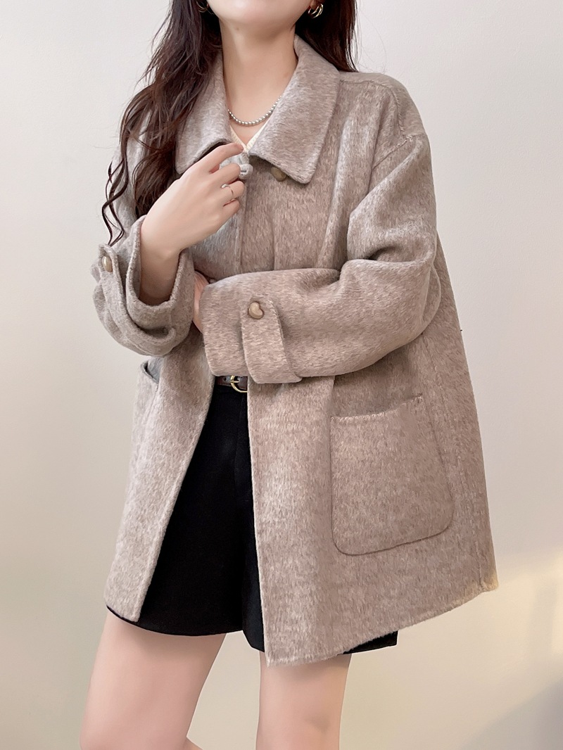 Spring and Autumn Double-sided Cashmere Coat Women’s Mid-length Slim-fit Elegant Korean Style Fashionable Solid Color All-match Wool Coat