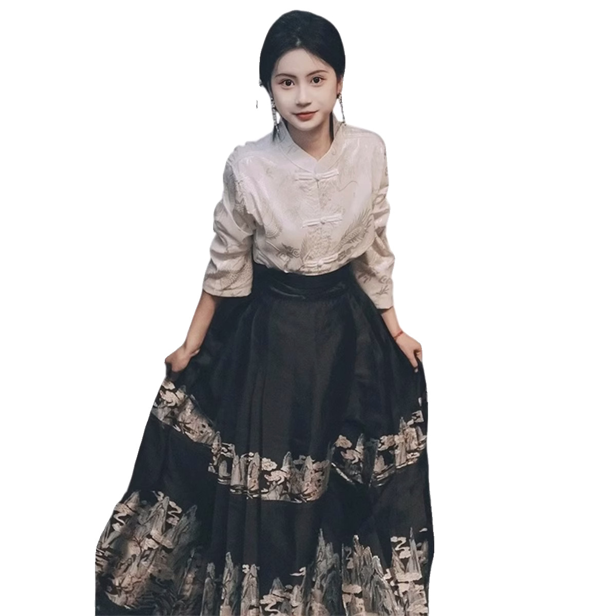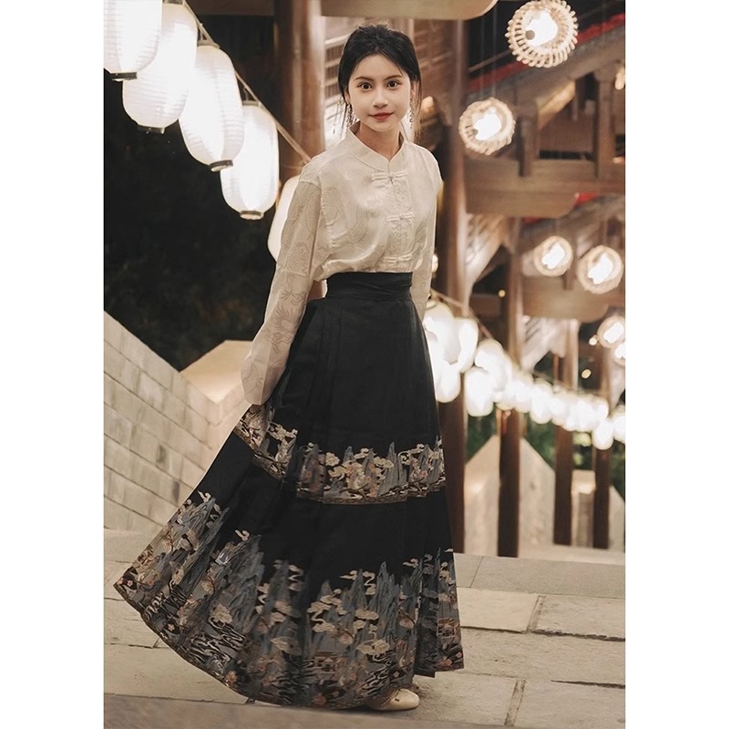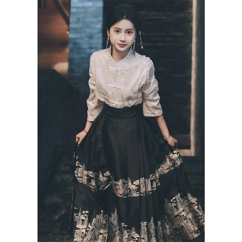 | nameOriginal | Spring and Autumn Dress with a Set of New Chinese Style National Style Improved Hanfu Small Men's Horse Face Dress High-end Two-piece Suit |