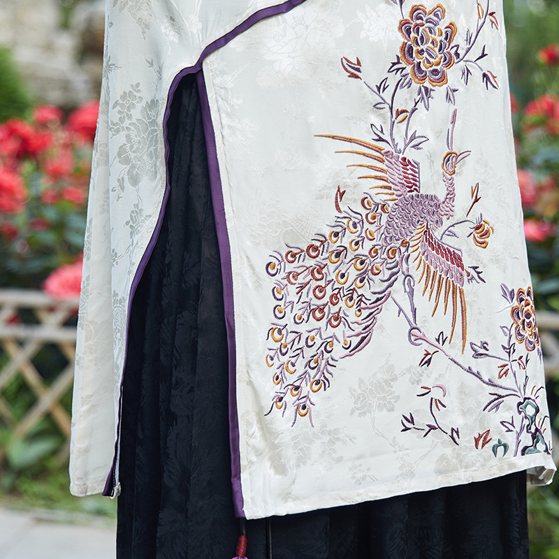 Spring and Autumn Ethnic Style Women’s Satin Embroidered Large Size Women’s Top Pullover Mid-length Vintage Ethnic Style Shirt