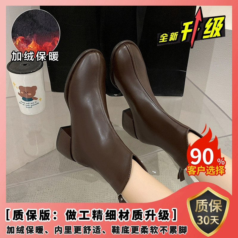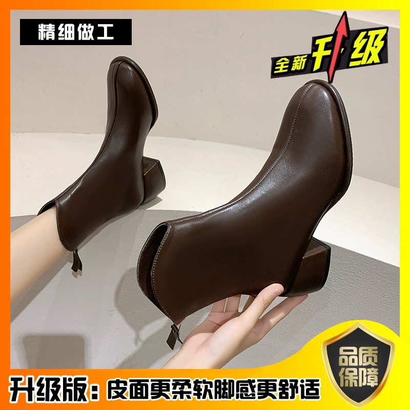 Spring and Autumn Fashionable Retro Thick Heel Anti-Slip Martin Short Boots
