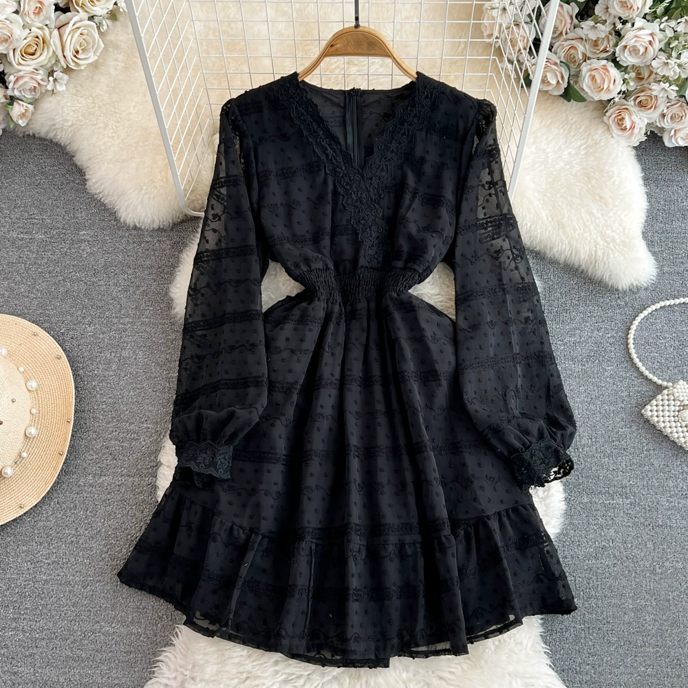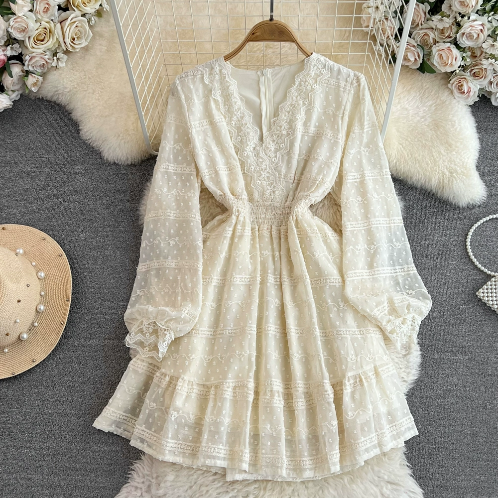| nameOriginal | Spring and Autumn French First Love Long Sleeve V-Neck A-Line Lace Skirt |