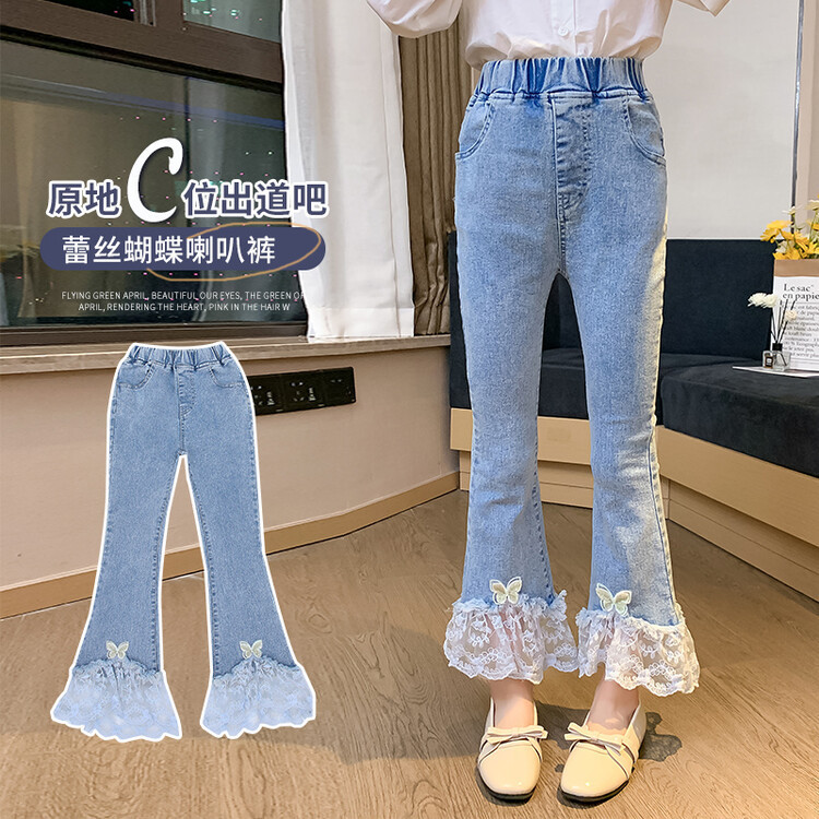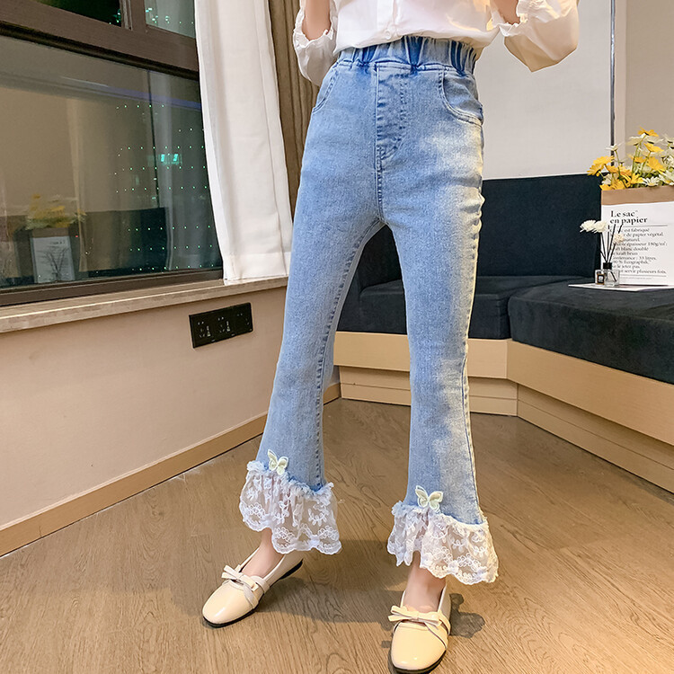 Spring and Autumn Girls' Jeans New Spring and Autumn Thin Children's Flared Pants Girls All-match Lace Stretch Trousers