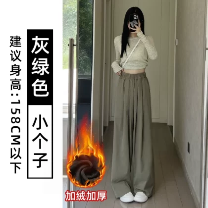 Spring and Autumn High-waisted Small Man Moving the Floor Casual Wide Legs