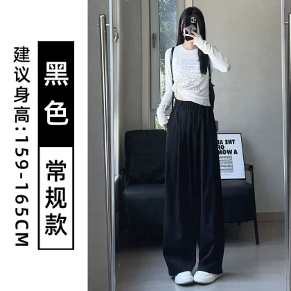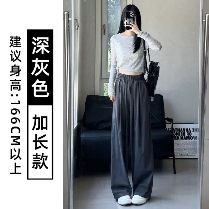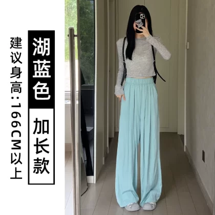 Spring and autumn high-waisted floor-length casual wide-leg pants