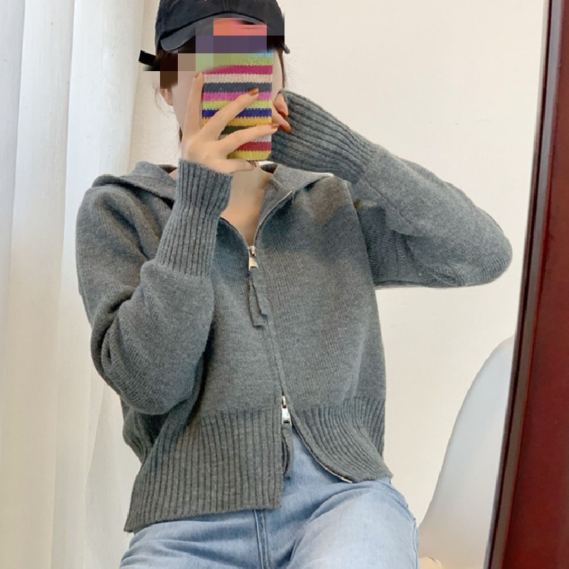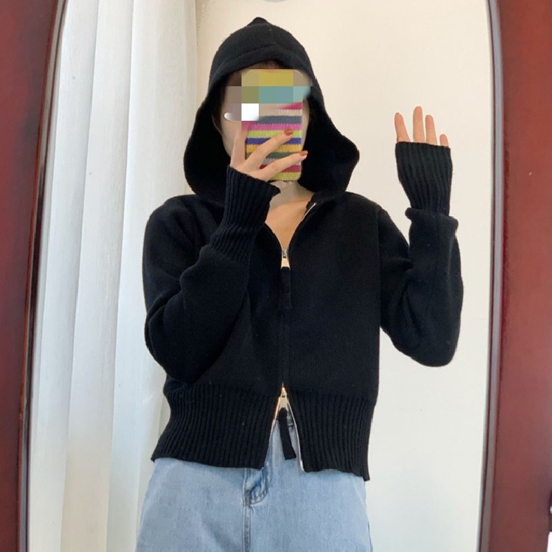 | nameOriginal | Spring and Autumn hooded sweater Women's Small Design double zipper Korean style solid color short cardigan sweater coat |