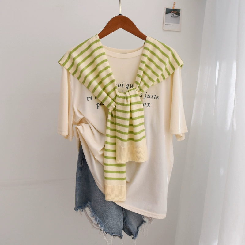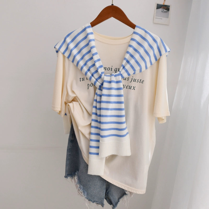| nameOriginal | Spring and autumn knitted striped shawl, high-end summer office air-conditioned room neck protector and shoulder shoulder scarf for female Internet celebrities, Korea |