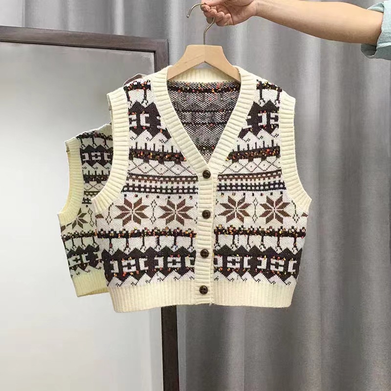 | nameOriginal | Spring and Autumn Korean-style All-match Casual Sweater Vest Women's V-neck Color Matching Rhombic Outer Knitted Vest Cardigan Women's Clothing |