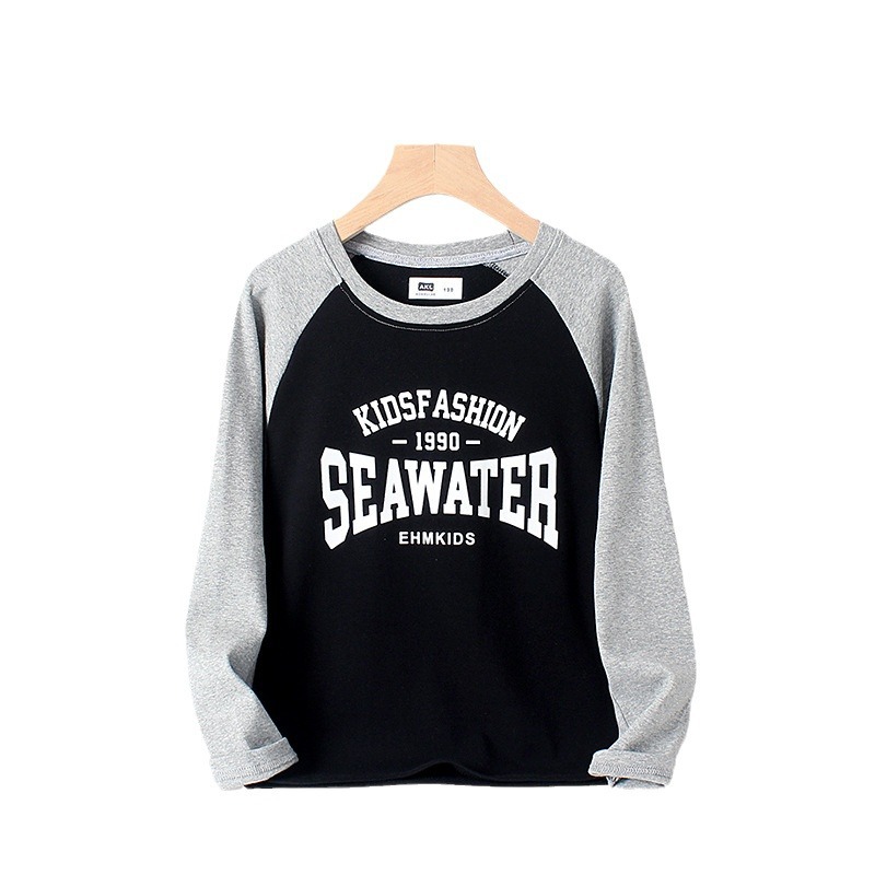 Spring and Autumn Korean style new children's long-sleeved T-shirt medium and big children's versatile Raglan cotton cashmere top boys' bottoming shirt