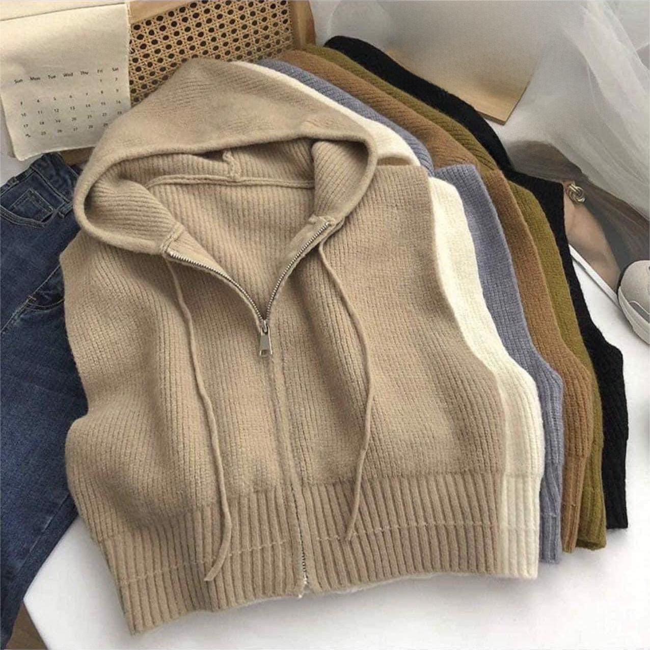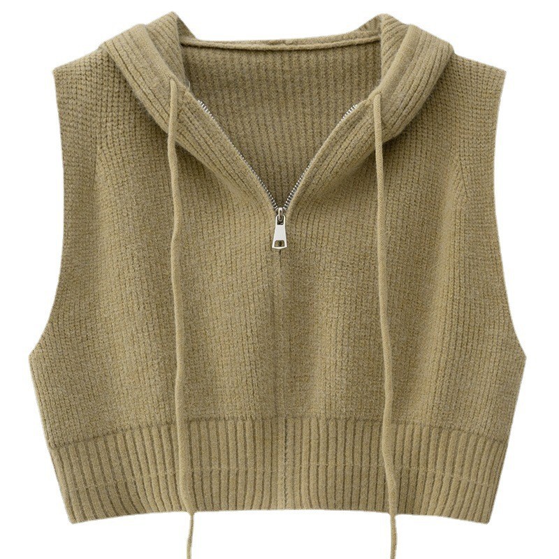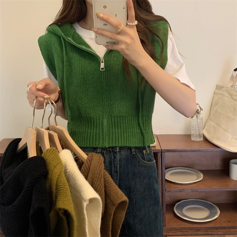 | nameOriginal | Spring and Autumn Korean-style Retro Casual Solid Color All-match Stacked Vest Zipper Drawstring Hooded Knitted Vest Cardigan Women's Clothing |