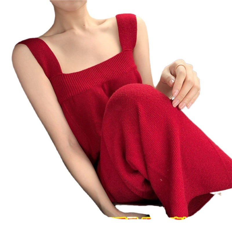 Spring and Autumn Korean Style Retro Overalls Women’s Loose Slimming Age-reducing Jumpsuit Casual Knitted Wide-leg Pants