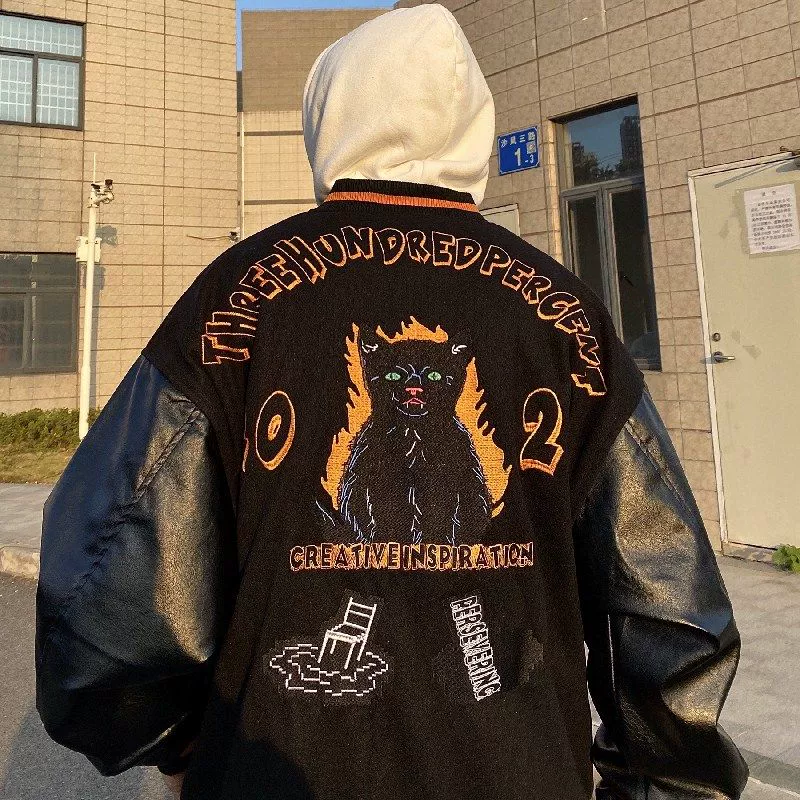 | nameOriginal | Spring and autumn large size 200 pounds national fashion high street baseball uniform men's ins fashion street American bomber jacket |