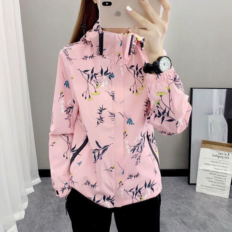 Spring and Autumn Lightweight Breathable Jacket Women’s Printed Camouflage Running Outdoor Mountaineering Windproof Waterproof Jacket for Women