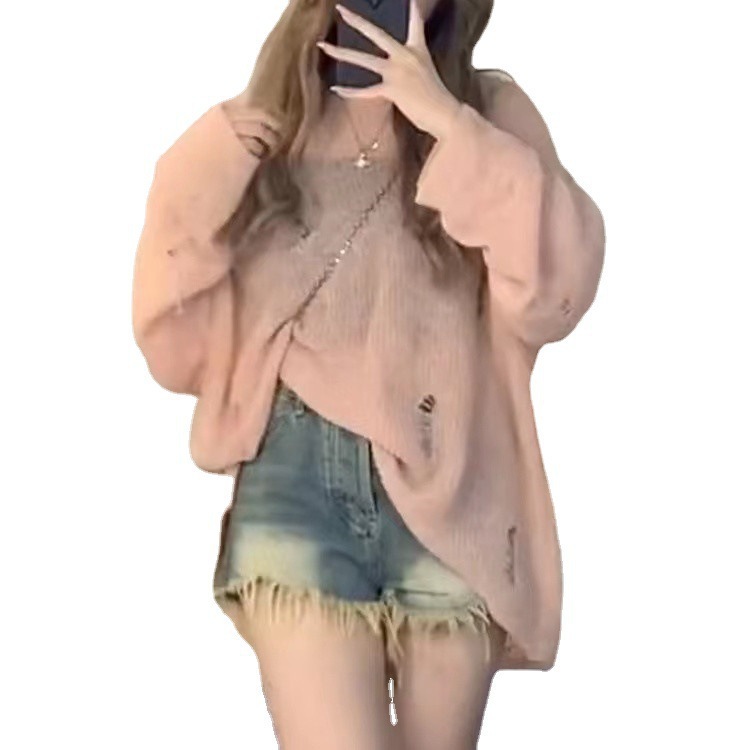 | nameOriginal | Spring and Autumn Long-sleeved Loose Sunscreen Shirt Pink Top Trendy Lazy Style Design Sense Niche Rearing Knitwear Sweater for Women |