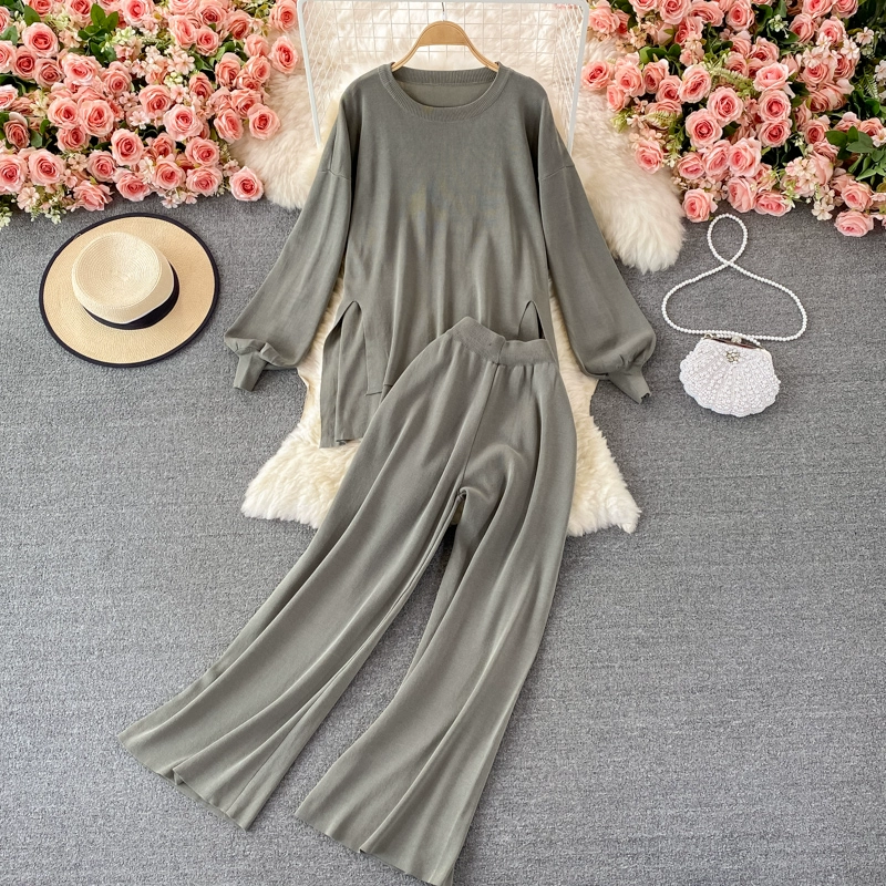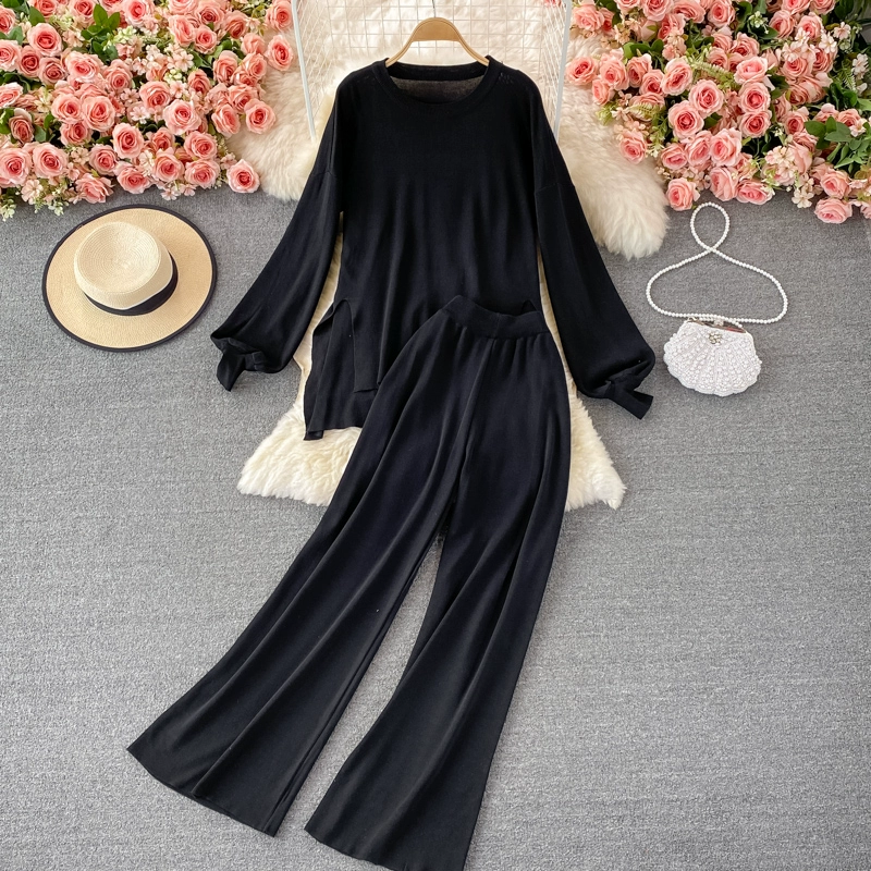 | nameOriginal | Spring and autumn mid-length high-waisted wide-leg pants knitted top |