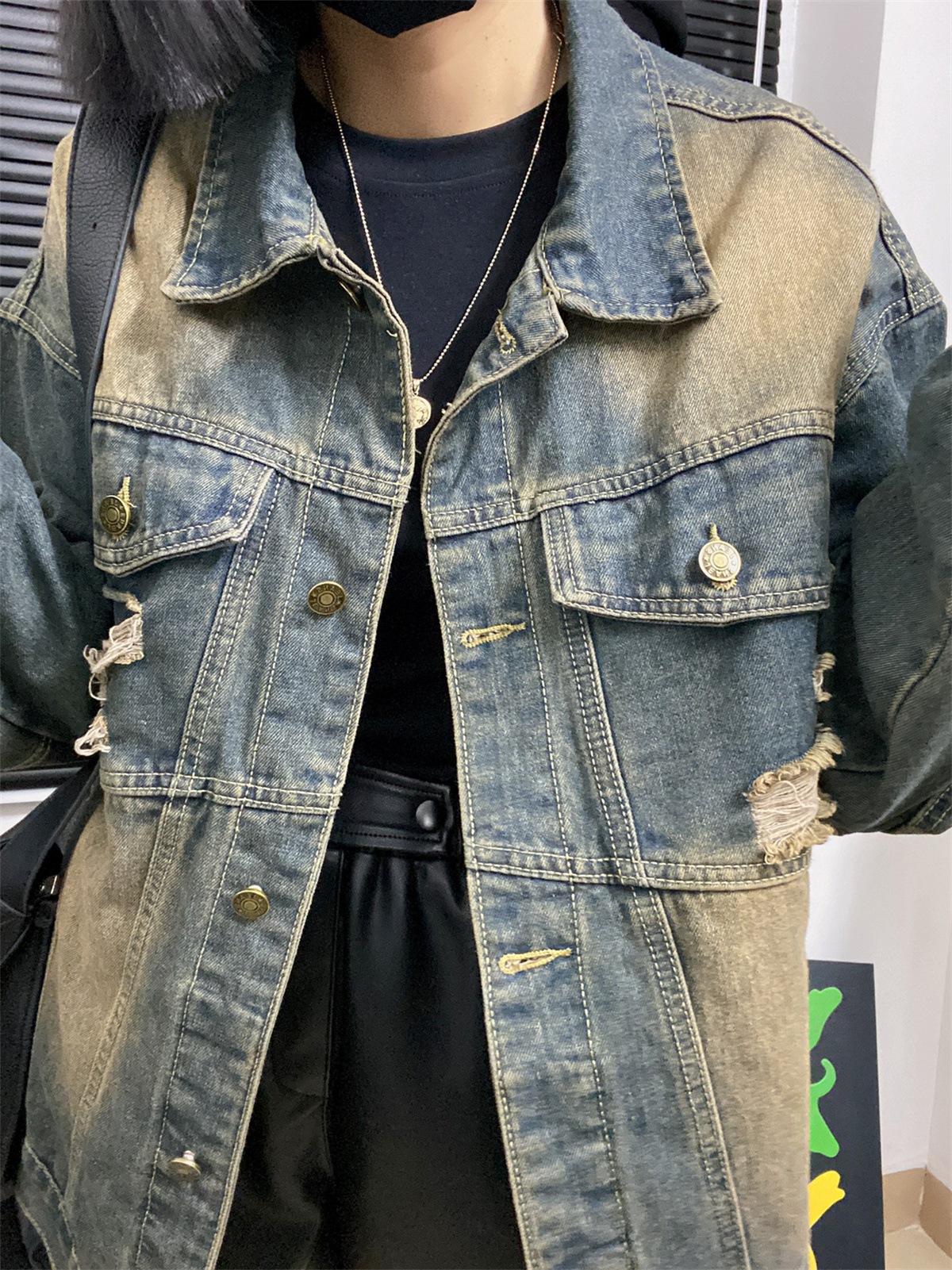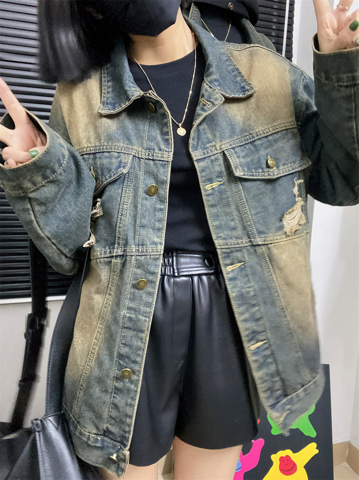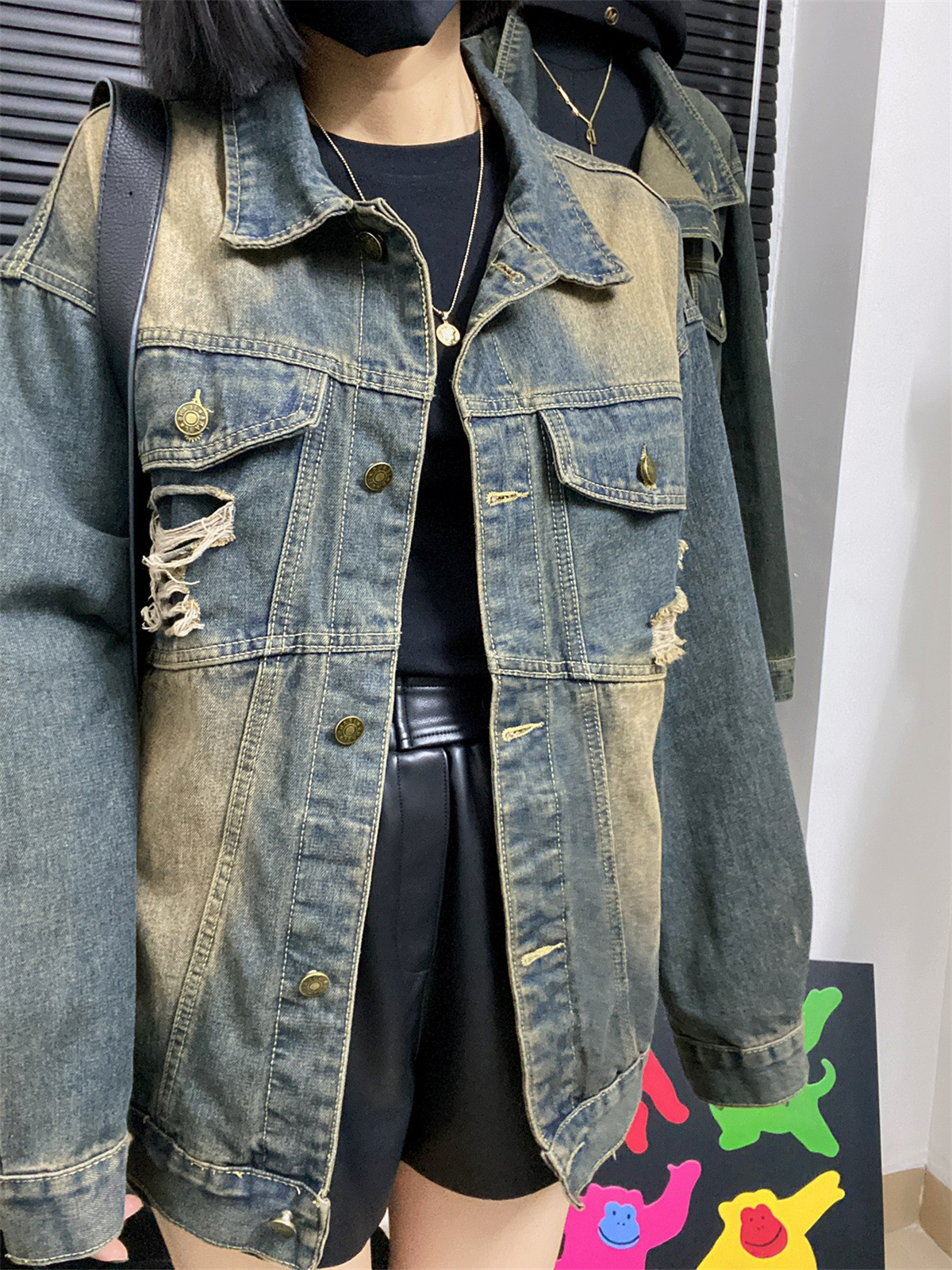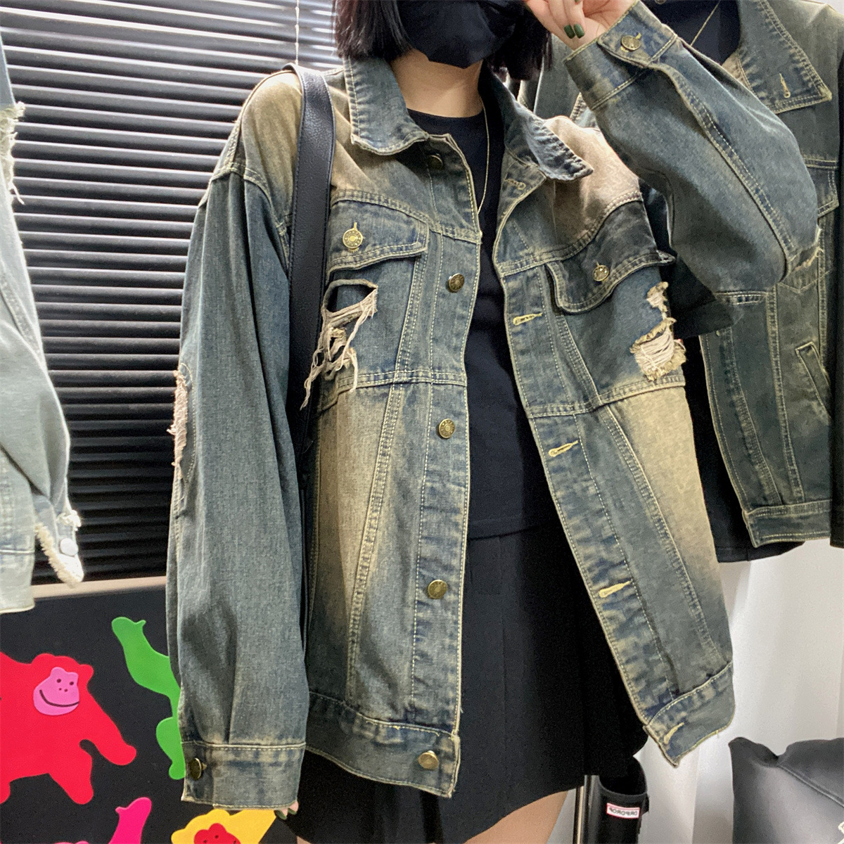 | nameOriginal | Spring and Autumn New Arrival Vintage Stunken Denim Jacket Women's Loose All-match Street-fried Jacket Design Sense Ripped Top Long Sleeve |