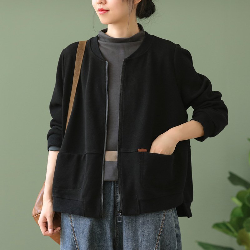 | nameOriginal | Spring and Autumn New Artistic Retro Pure Cotton Solid Color Long-sleeved Short Jacket Loose Slimming Fashionable All-match Baseball Collar Top |