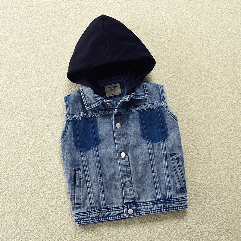 Spring and Autumn New Children’s Wear Boy’s Denim Vest Children’s Top Casual European and American Children’s Middle and Big Children’s Vest Hooded