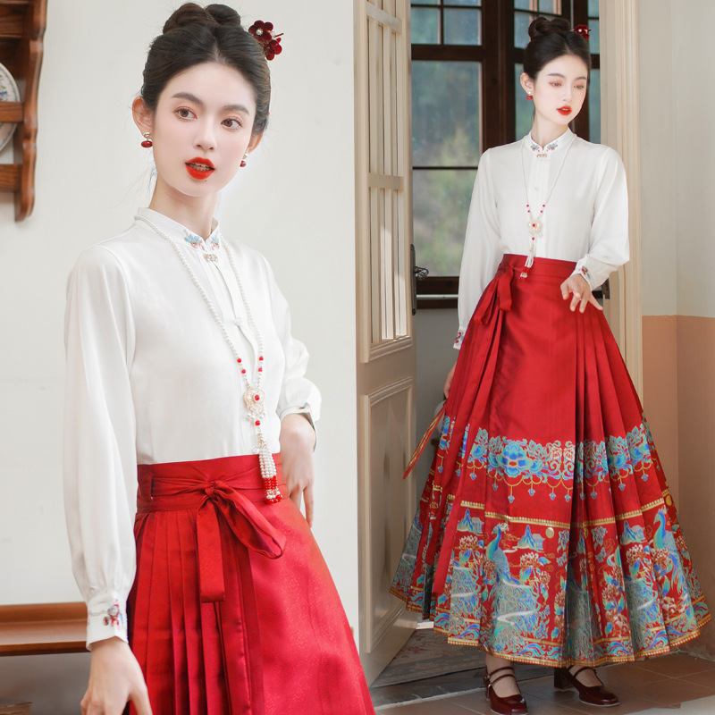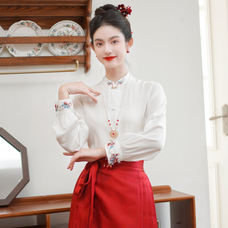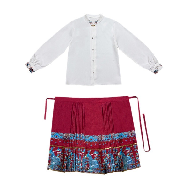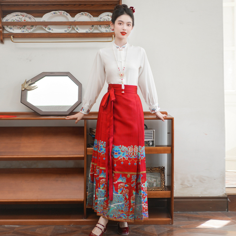 Spring and Autumn New Chinese Style Retro Vertical Collar Embroidered Improved Tang Suit Top High-end Weaved Gold Horse Face Skirt National Fashion Two-piece Suit