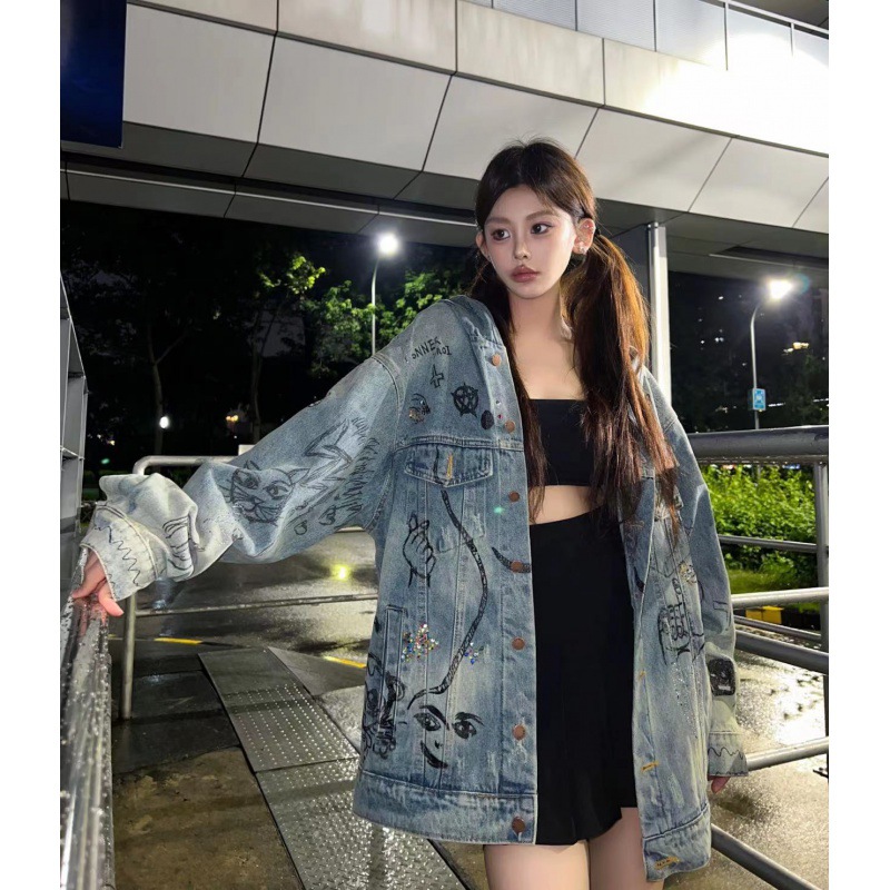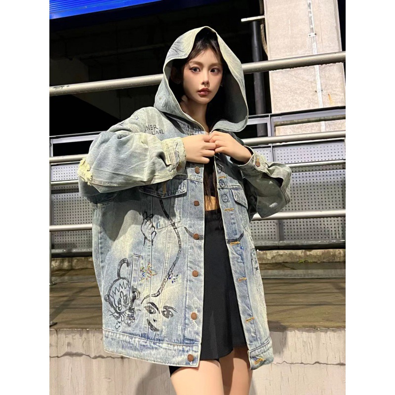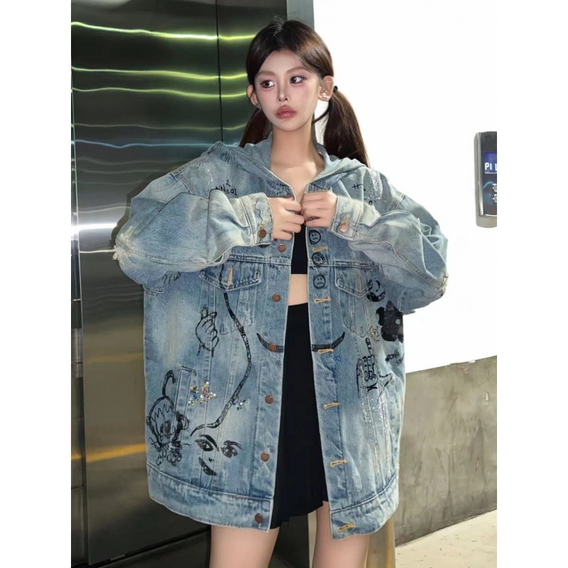 | nameOriginal | Spring and Autumn New Ins Style Hand-painted Rhinestones Lazy Defined Hooded Denim Jacket for Lovers |