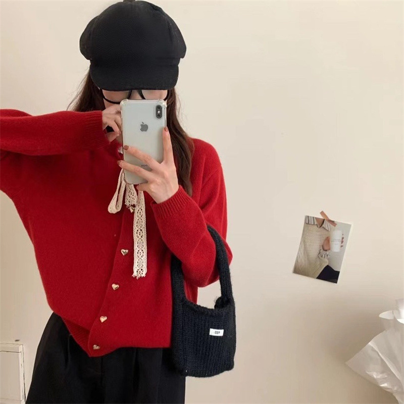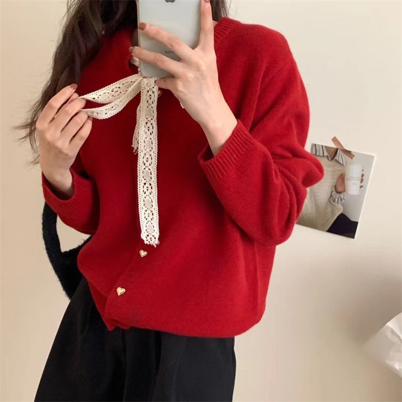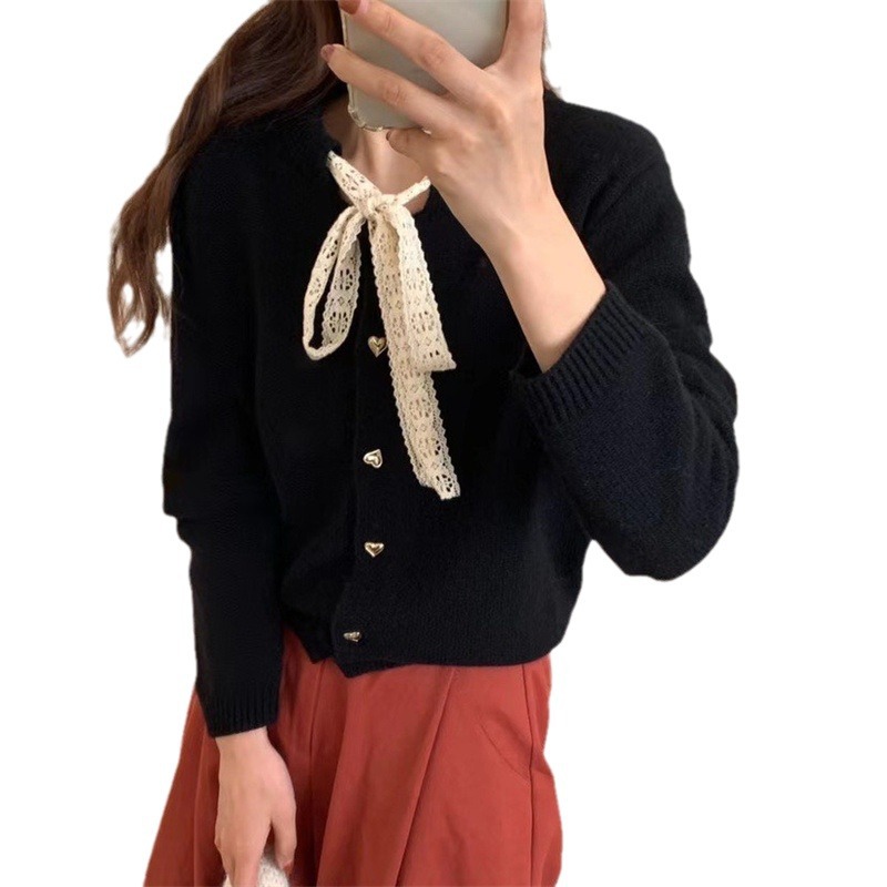 | nameOriginal | Spring and Autumn New knitted cardigan women's Korean-style lace lace bow soft glutinous love buckle round neck sweater coat women |