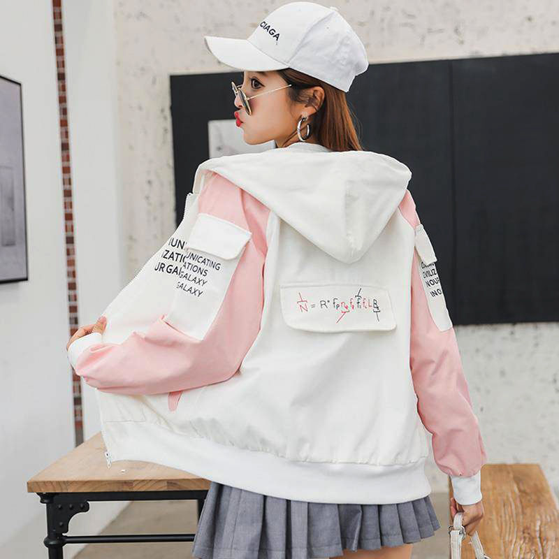 | nameOriginal | Spring and Autumn New Korean Style Loose Student Hooded Color Matching Printed Jacket Women's All-match Casual Jacket Baseball Clothes Top |