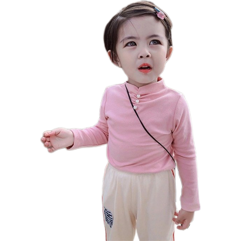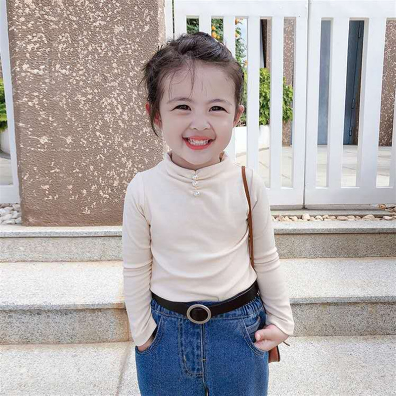 Spring and Autumn New pearl neckline long-sleeved shirt baby girl Korean style girl’s T-shirt fashionable bottoming shirt