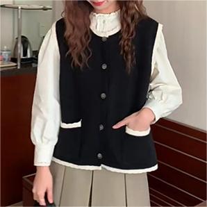 | nameOriginal | Spring and Autumn New Stitching Lace Vest Knitwear Academy Style Design Sense Niche Inner Waistcoat Cardigan Coat Women |