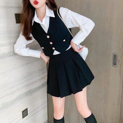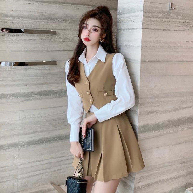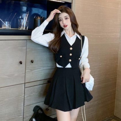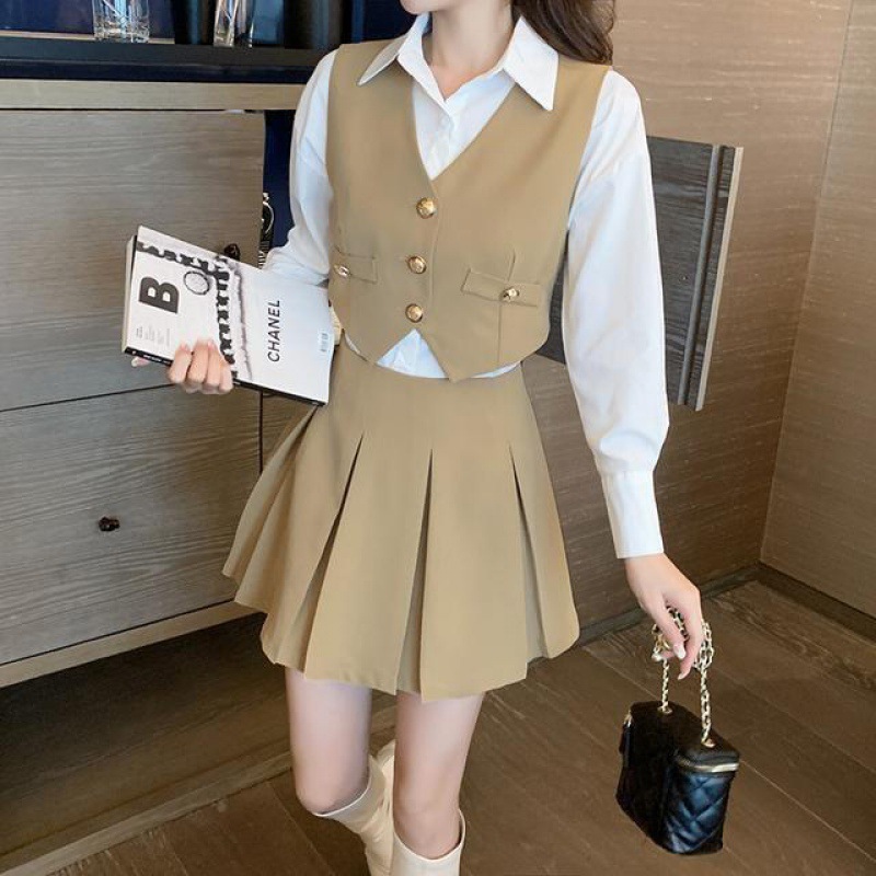 | nameOriginal | Spring and Autumn New Vest Shirt Short Skirt Three-piece Set Women's Suit Skirt Set Small Royal Sister College Fashion |