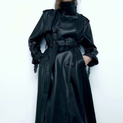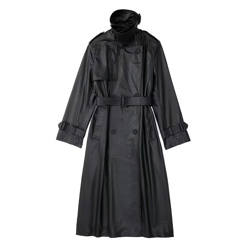| nameOriginal | Spring and Autumn New Women's Clothing European and American Retro Casual Black Long with Belt Fashionable All-match Imitation Leather Windbreaker Jacket |
