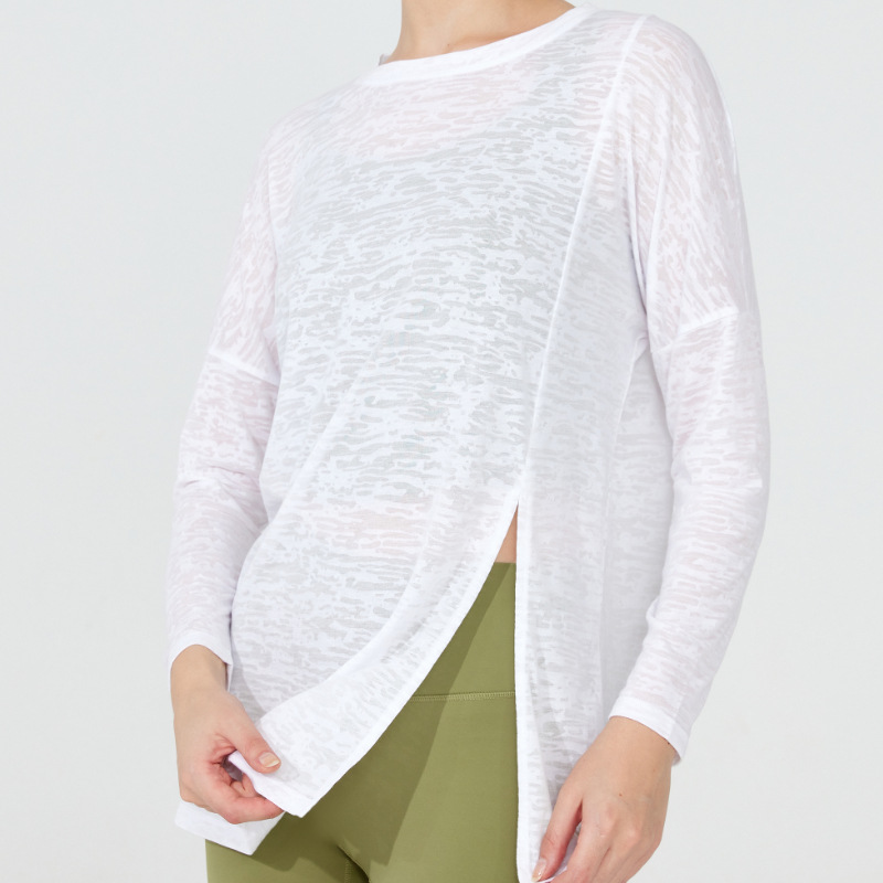 Spring and Autumn new yoga clothes long-sleeved blouse running top women's training sportswear slit breathable loose workout clothes