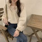 Spring and Autumn Niche Design Sense Top Women’s Sweet Puff Sleeve Long Sleeve Shirt with Ear