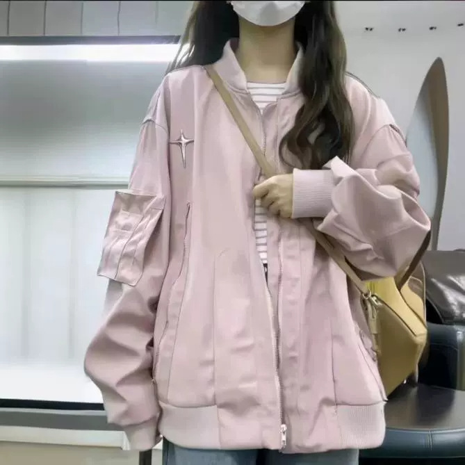 Spring and Autumn Pink Jacket Baseball Suit Women's 2024 New Loose Design Sense Fried Street Student Couple Jacket Wholesale
