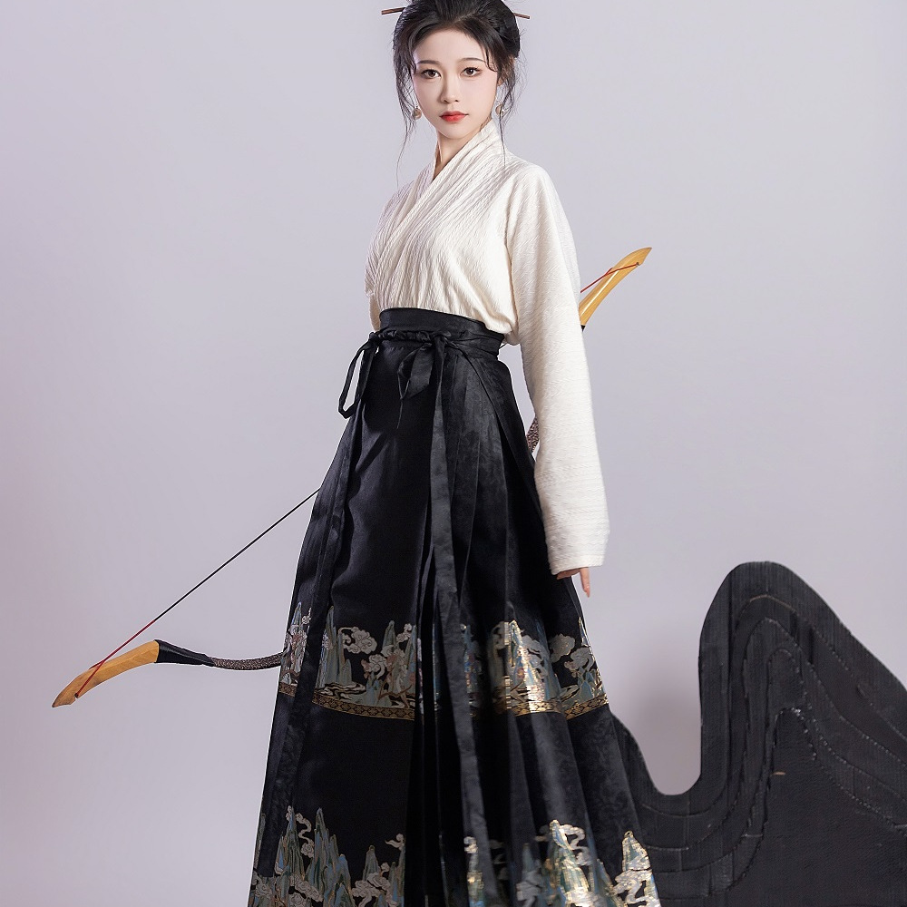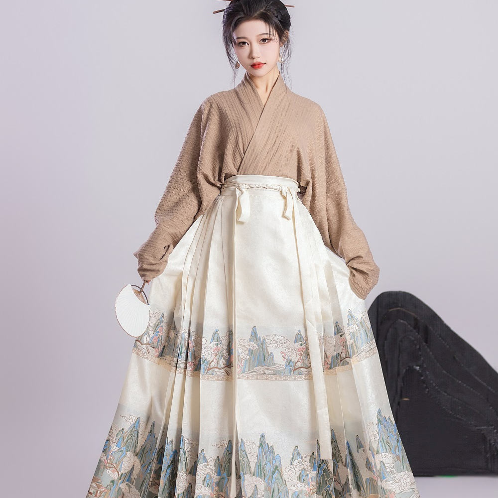| nameOriginal | Spring and Autumn plus size New Chinese Ming-made Hanfu Top Thousand Miles Imitation Makeup Flower Horse-faced Skirt Antique Two-piece Suit |