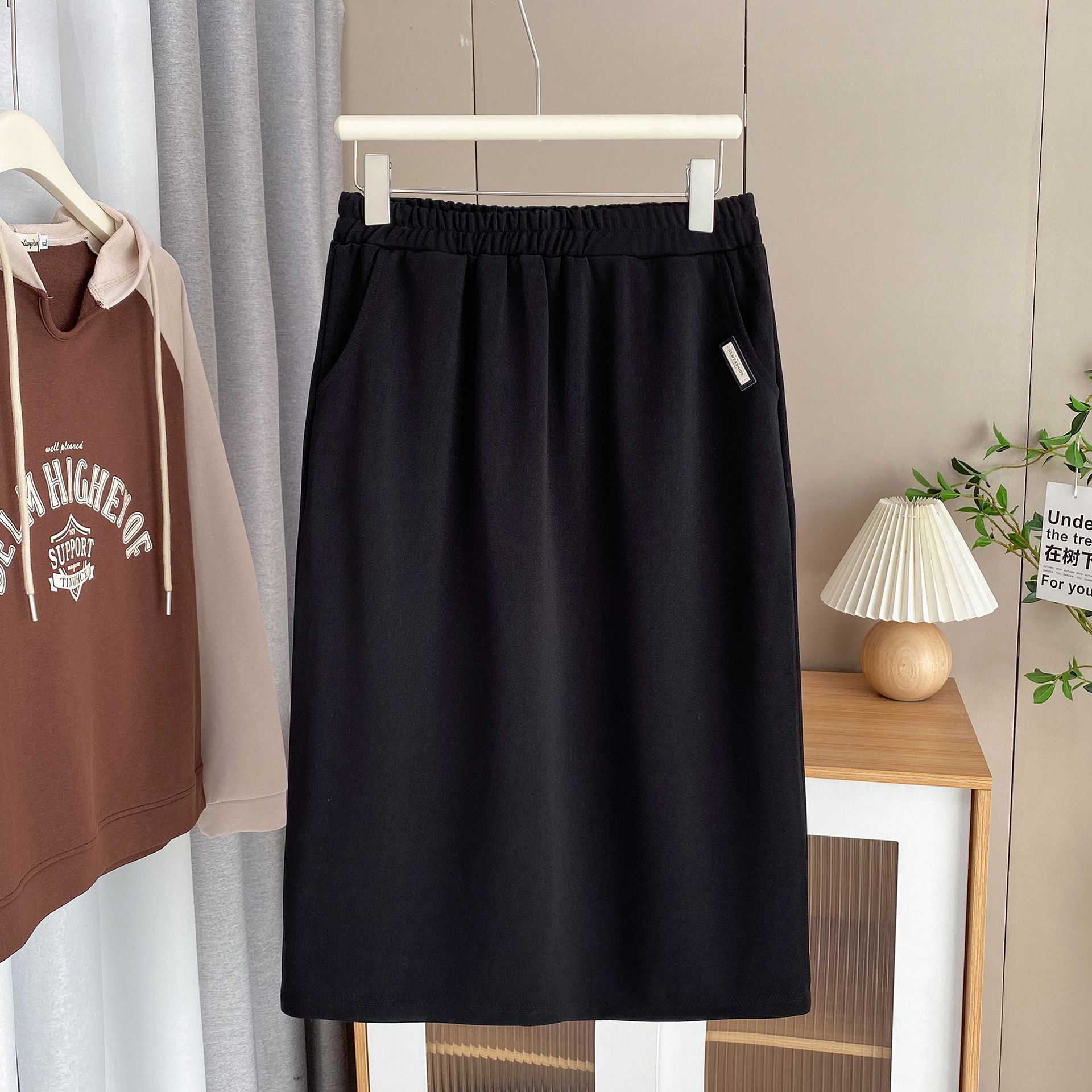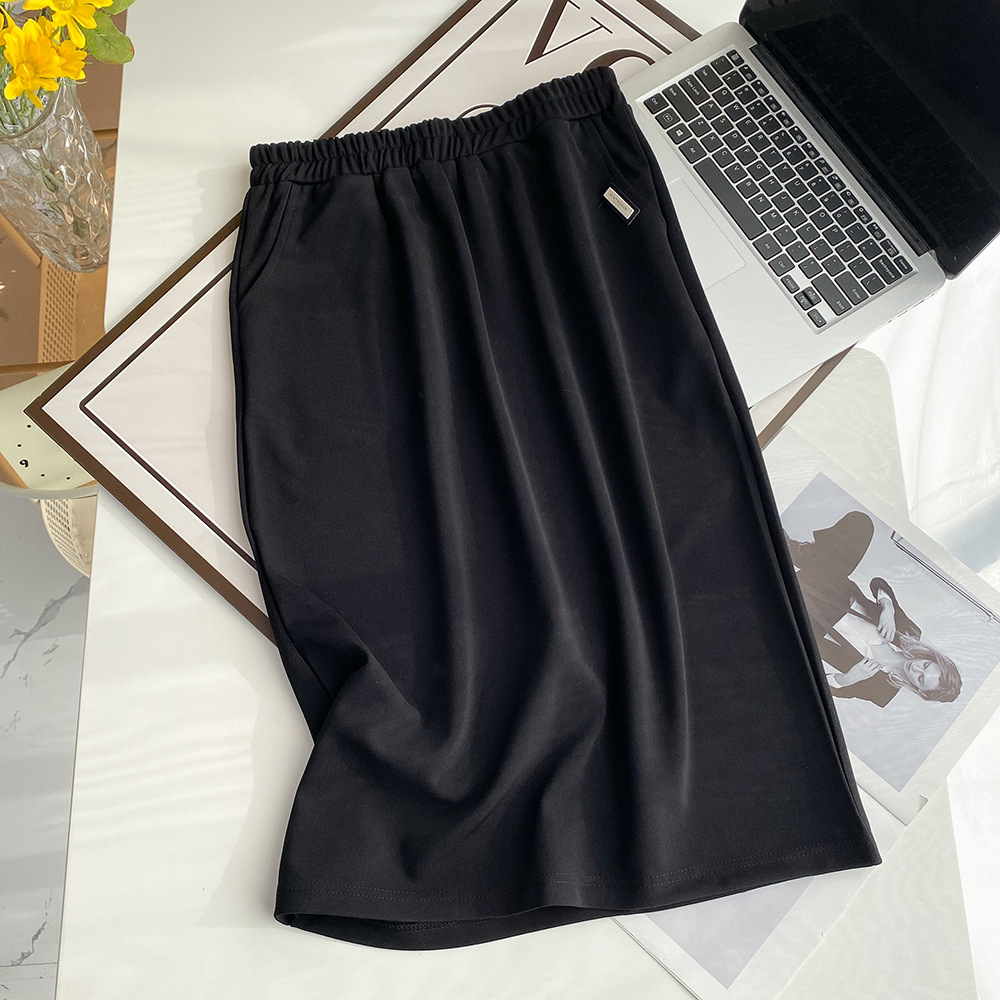 | nameOriginal | Spring and Autumn plus size women's skirt fat sister versatile casual elastic waist mid-length split skirt 2346 |