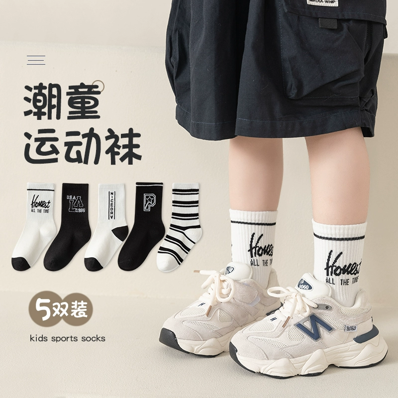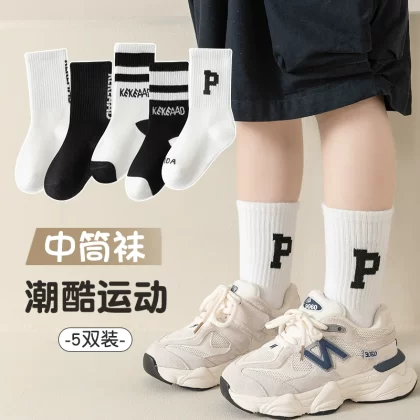 | nameOriginal | Spring and autumn pure cotton black baby student children's socks |