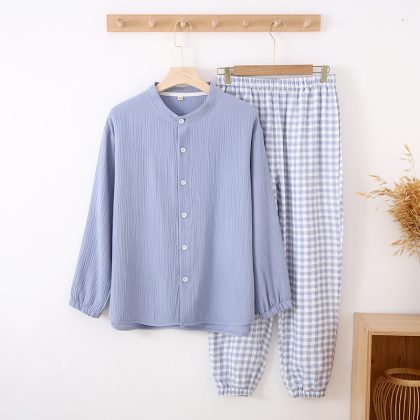 | nameOriginal | Spring and Autumn Pure Cotton Japanese Plaid Men's Home Suit Long-sleeved Simple Double-layer Gauze Pure Cotton Thin Pajamas |